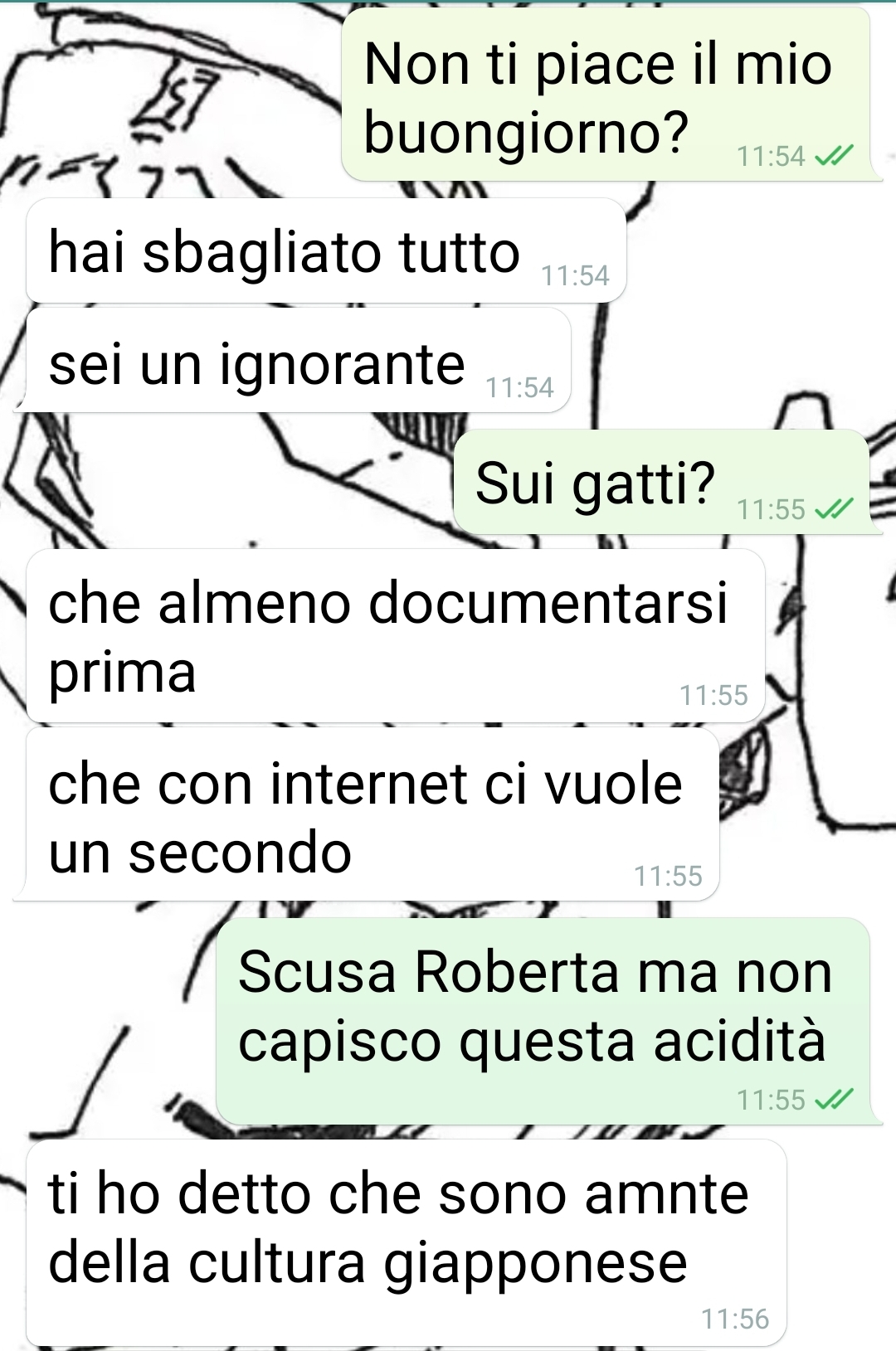 Ho dato un buongiorno simpatico ad una ragazza che stavo iniziando a frequentare, ed è finita a schifo. Ma si può impazzire a questo modo per un gadget preso ad un ristorante? Io sono Giampiero e vi condivido questo 2 di picche che ho ricevuto in questa chat da Roberta. Non è che mi vanto del mio fallimento, è solo per farvi vedere che razza di persona mi sono trovato di fronte. O meglio, quella in cui si è trasformata perché io sarei ignorante. Come se tutti ora devono essere esperti di cultura giapponese. Assolutamente da non credere. A questa Roberta l’ho beccata su tinder, match reciproco, qualche conversazione brillante in chat e un paio di giorni fa il primo incontro dal vivo, un aperitivo andato benissimo. Interesse reciproco confermato e anche abbastanza serio. Lei ha dei gatti, io no. Oggi però faccio il simpatico con un gatto giocattolo che saluta. Disastro. È esperta di cultura giapponese. Scopro che quel gatto non saluta. E che lei è pazza!