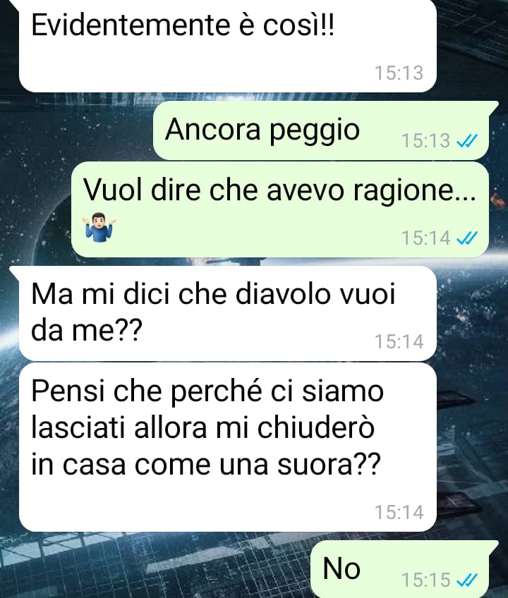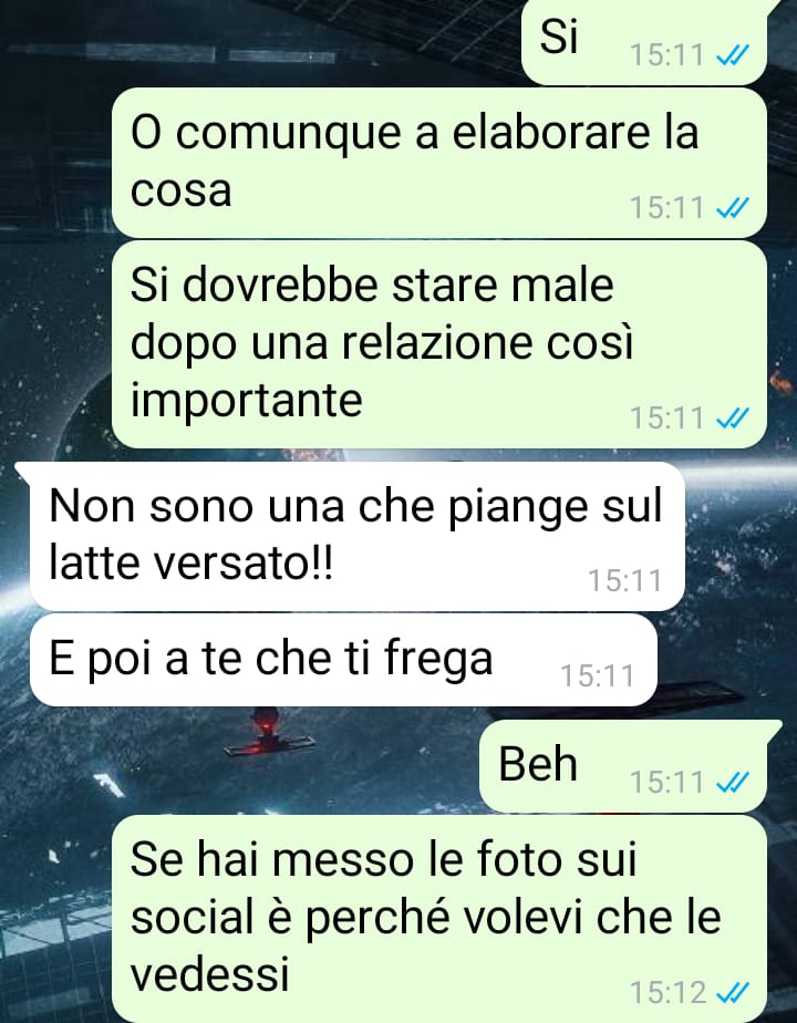 Poi, senza alcun preavviso, tutto è crollato. La sua fidanzata, racconta, ha avuto quello che definisce “un momento di sclero”, e da quel momento ha deciso di chiudere la relazione. Niente confronto, nessuna spiegazione chiara, solo la frase: “Mi dispiace, ma è meglio così per entrambi”. Da allora, dice, lei non ha più voluto parlargli né chiarire davvero i motivi della decisione, lasciandolo confuso e ferito.