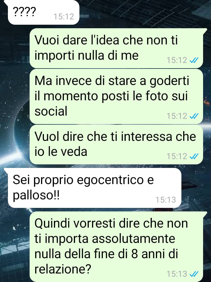 Un nostro fan di 33 anni ha deciso di raccontare la fine improvvisa della sua relazione, durata ben otto anni, e il modo in cui tutto è cambiato da un giorno all’altro. L’amico spiega che non si sarebbe mai aspettato una rottura tanto repentina e, soprattutto, così fredda. Racconta che, fino a poche ore prima, la sua relazione sembrava proseguire normalmente: messaggi del buongiorno, attenzioni quotidiane e una routine di coppia che dava l’idea di una certa stabilità.