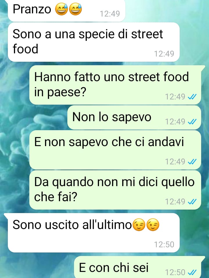 ho lasciato il mio ragazzo per messaggio, su whataspp, ma sto malissimo per quello che è successo e per le cose che lui mi ha detto. Ho voluto mandare gli screen perché penso che tutti dovrebbero sapere che là fuori ci sono persone così. Io e il mio ormai ex ci siamo conosciuti tramite amici di amici a una festa di compleanno lo scorso ottobre e lui mi chiese di andare al cinema. Da cosa nasce cosa e abbiamo cominciato a frequentarci. In tutti questi mesi ci siamo sempre dedicati a un’alimentazione di un certo tipo, finché lo scorso fine settimana lui mi ha mandato una foto di quello che stava mangiando fuori casa. Ho cominciato ad avere dei sospetti sul suo comportamento generale e alla fine sono riuscita a scoprire le sue vere intenzioni. Se pur corta, ho vissuto una relazione di finzione e di apparenza e sono contenta di aver trovato il coraggio di cancellarlo subito dalla mia vita. Ma la mia paura più grande è che possa aver ragione e che ormai tutti i ragazzi di oggi la pensano come lui.