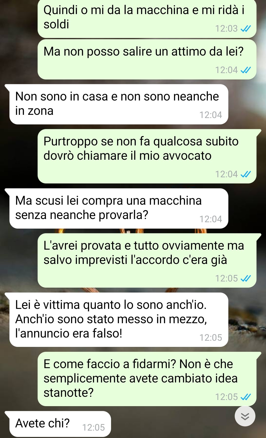 Circa tre mesi fa, il nostro fan ha dovuto affrontare la perdita definitiva della sua amata automobile, un evento particolarmente doloroso per lui che si affeziona molto ai propri mezzi di trasporto e cerca sempre di utilizzarli il più a lungo possibile. Non disponendo di grandi risorse economiche, l’amico si è immediatamente messo alla ricerca di una nuova vettura usata. Dopo varie ricerche, ha individuato una Fiat Punto rossa che sembrava perfetta per le sue esigenze. Ha contattato il proprietario tramite l’annuncio pubblicato, ricevendo spiegazioni dettagliate sul veicolo. I due sono quindi rimasti d’accordo su una procedura che prevedeva il versamento di una caparra per riservare l’auto, seguito da un incontro per la visione e la prova su strada, con l’impegno di acquisto definitivo in caso di esito positivo.