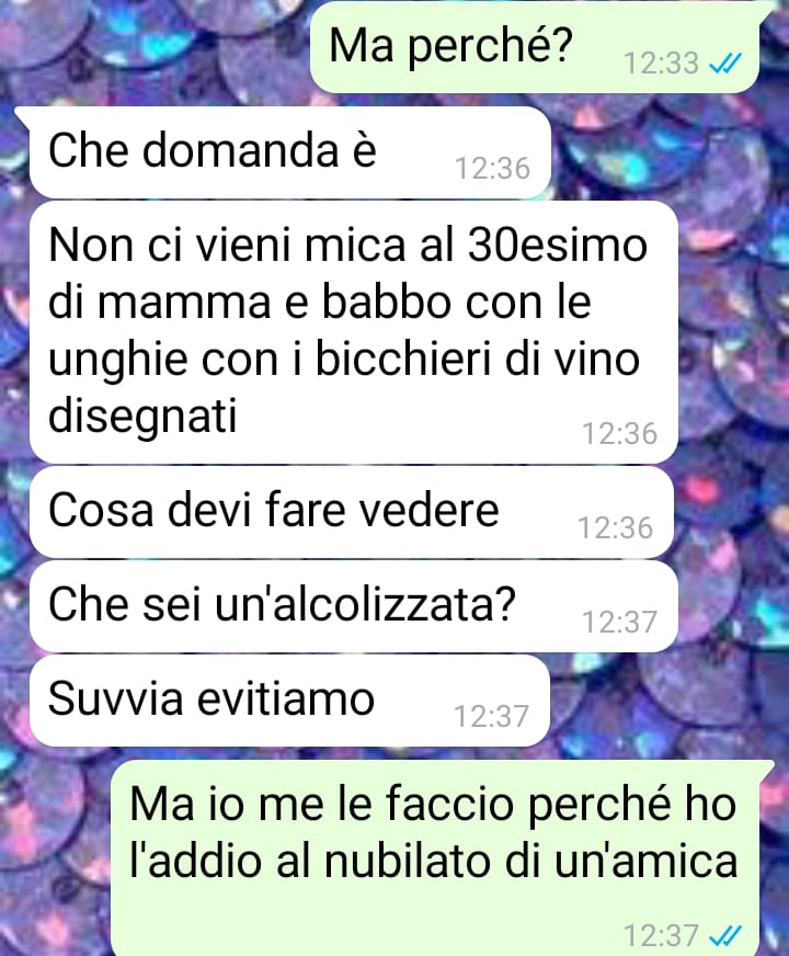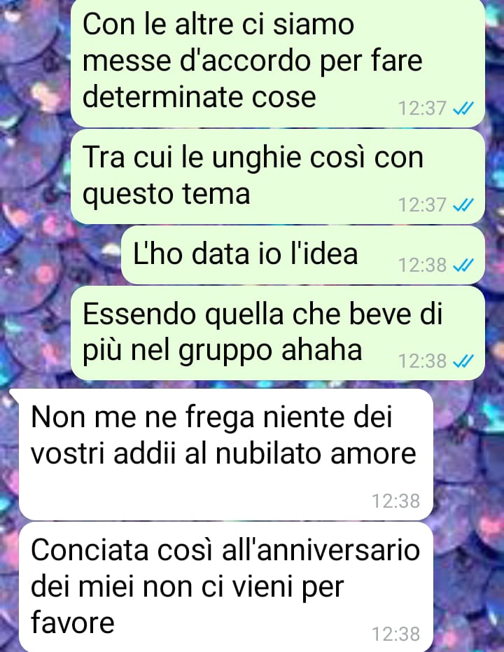 Tutto è iniziato con una richiesta semplice, fatta al proprio fidanzato: un consiglio su una nail art con un motivo a “calici di vino”. Un’idea originale, leggera, in linea con la personalità della nostra amica, che si definisce solare, energica e amante delle feste, del divertimento e della compagnia delle proprie amicizie.