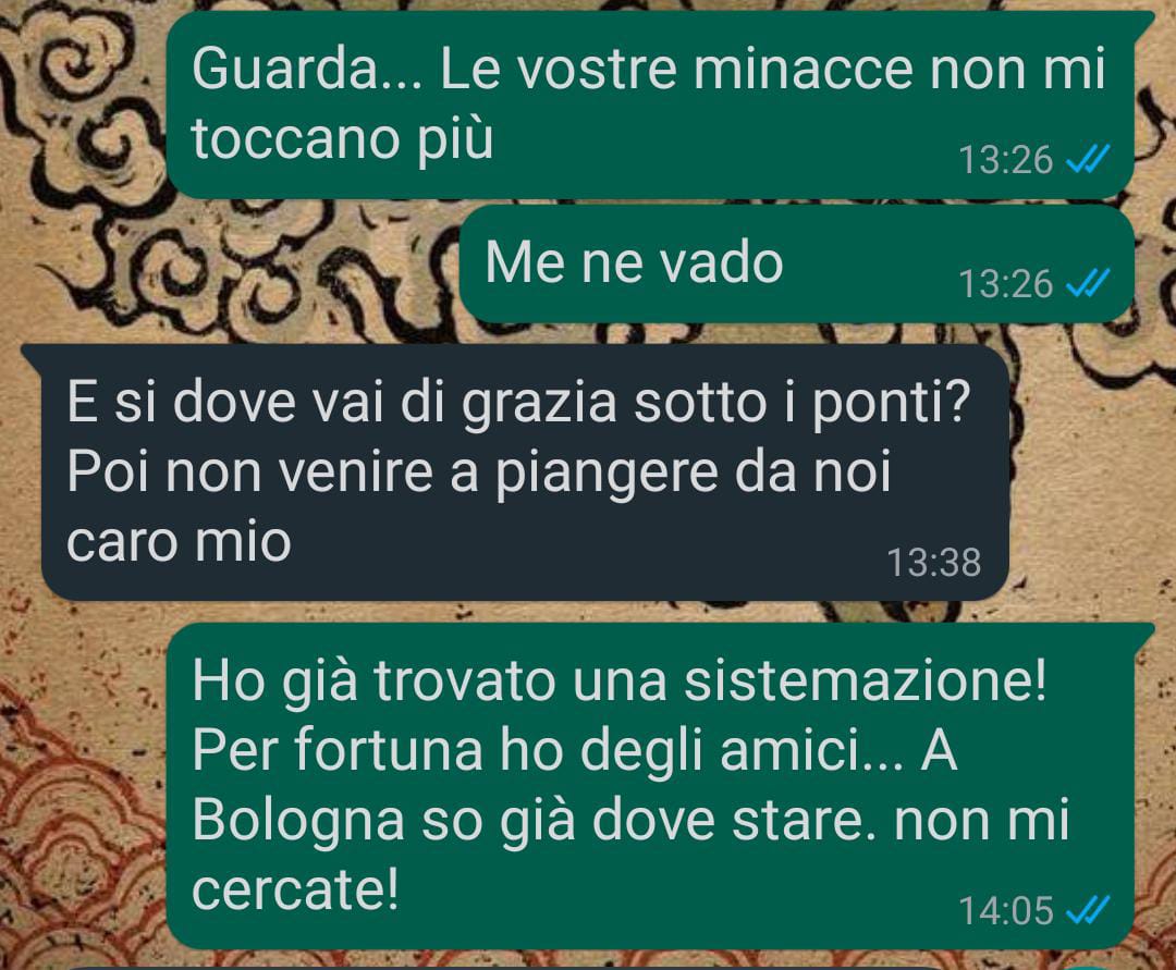 Ora che ha raggiunto la maggiore età, la nostra fan esprime la ferma intenzione di costruire il proprio futuro secondo le proprie aspirazioni, rifiutando di essere sfruttato dalla famiglia con la giustificazione di essere stato cresciuto da loro. L’amico sostiene con convinzione che un figlio non dovrebbe sentirsi in debito per aver ricevuto cibo, vestiti e istruzione, considerando questi elementi come diritti fondamentali derivanti dalla scelta dei genitori di metterlo al mondo. Nonostante ammetta di essere terrorizzato dalla situazione, il follower dimostra determinazione nel voler lottare per i propri obiettivi, sottolineando la propria natura proattiva e la volontà di impegnarsi per realizzare i propri sogni, chiedendo auguri di buona fortuna per il percorso che sta per intraprendere.