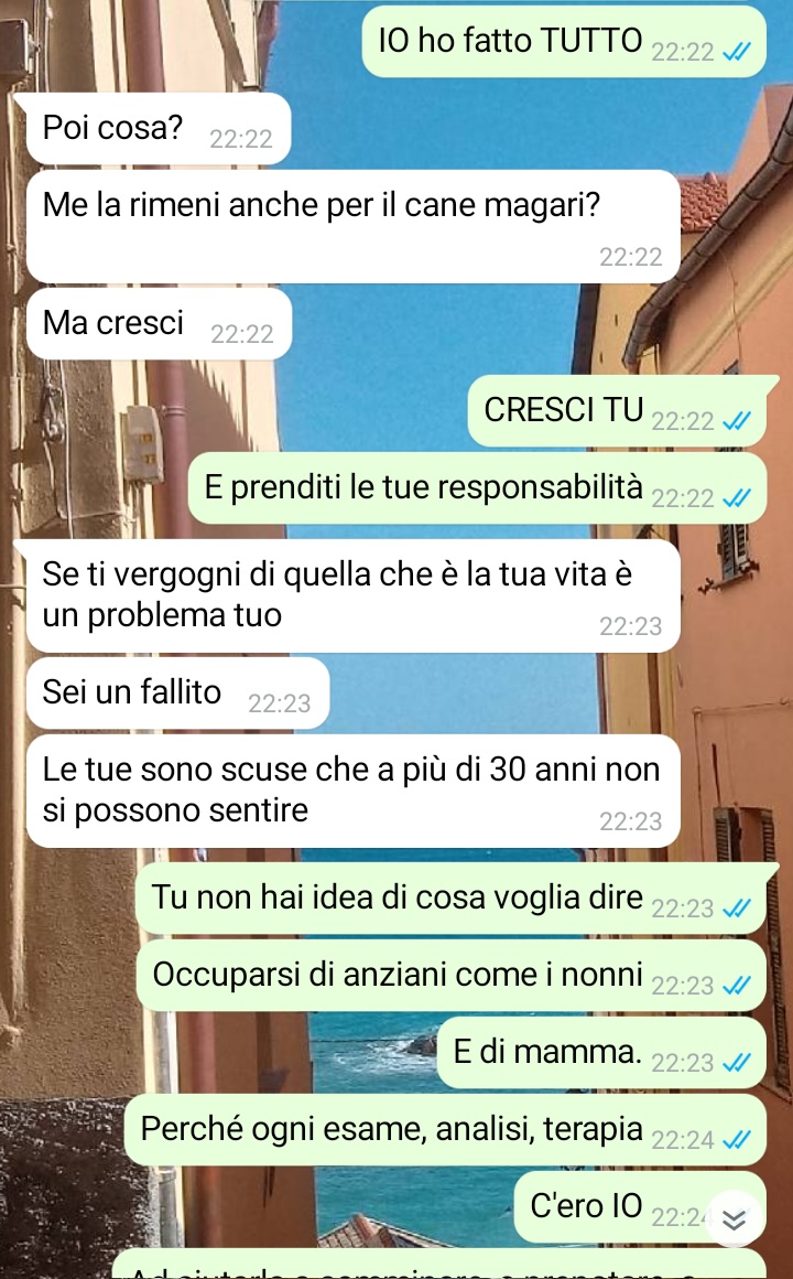 Il nostro fan racconta di voler condividere una conversazione avuta con suo fratello qualche tempo fa, con l’intento di far sentire meno sole le persone che hanno vissuto esperienze simili alla sua. Nel suo messaggio il follower spiega di credere molto nel valore della famiglia, tanto da averla sempre considerata la priorità assoluta nella propria vita. Il nostro amico racconta che questa scelta è stata notata anche dalle persone che lo circondano e che, secondo alcuni, avrebbe dedicato alla famiglia perfino più energie del necessario. Tra queste persone, spiega il nostro fan, ci sarebbe anche il fratello minore.