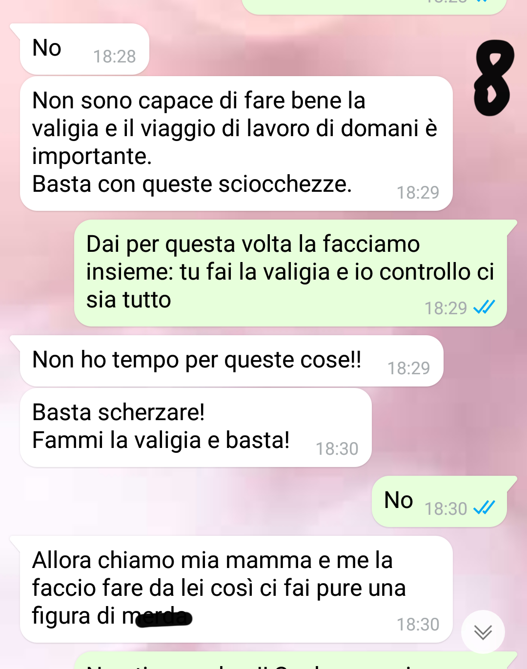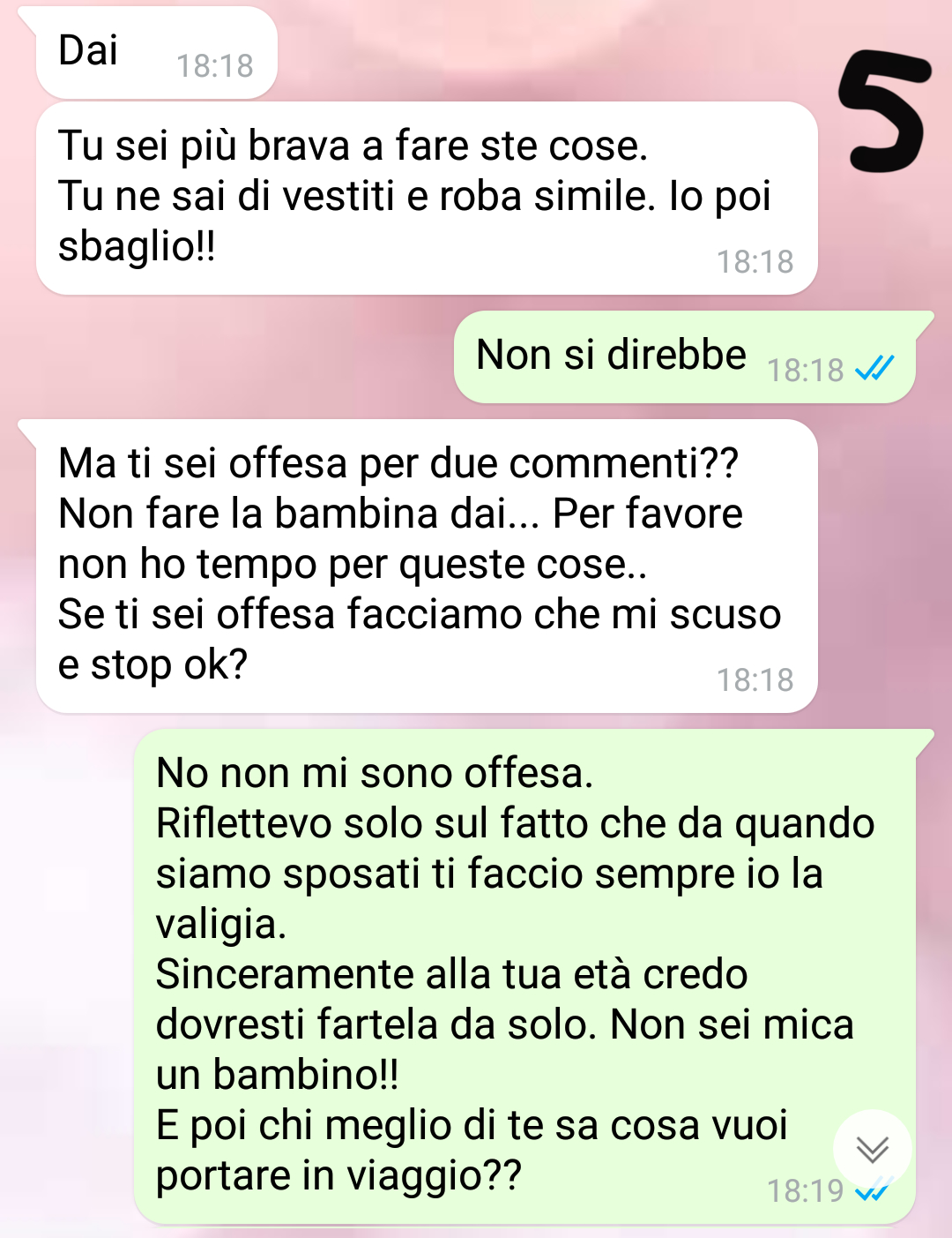 Maria si rivolge ai lettori di “Commenti Memorabili” per condividere la sua disperazione riguardo alla dipendenza del marito Fabio da lei in tutte le faccende domestiche e nella vita quotidiana. Nonostante anche lei lavori a tempo pieno, Maria si ritrova a svolgere tutte le mansioni domestiche da sola, inclusi pulizie, cucina, lavanderia, stiratura e fare la spesa. Va oltre, preparando i vestiti per Fabio ogni giorno e addirittura facendo la valigia per lui quando deve viaggiare per lavoro, poiché lui sostiene di non essere in grado di farla da solo.