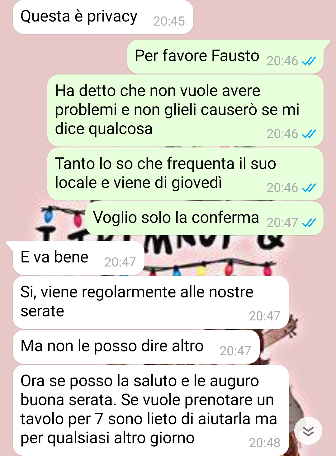 A quel punto la nostra amica ha deciso di provare a contattare il locale personalmente. Il nostro fan racconta di aver scritto allo stesso numero e che, dopo circa un’ora, il titolare del locale le ha finalmente risposto. Durante quella conversazione, la follower spiega di aver chiesto spiegazioni sul motivo per cui alla sua amica non fosse stato risposto il giorno precedente. Proprio da quel momento, secondo il racconto della nostra fan, la situazione ha preso una piega del tutto inattesa. Federica racconta che, proseguendo la conversazione, ha scoperto qualcosa che l’ha profondamente colpita e che l’ha portata a pensare che quell’episodio fosse quasi inevitabile.
