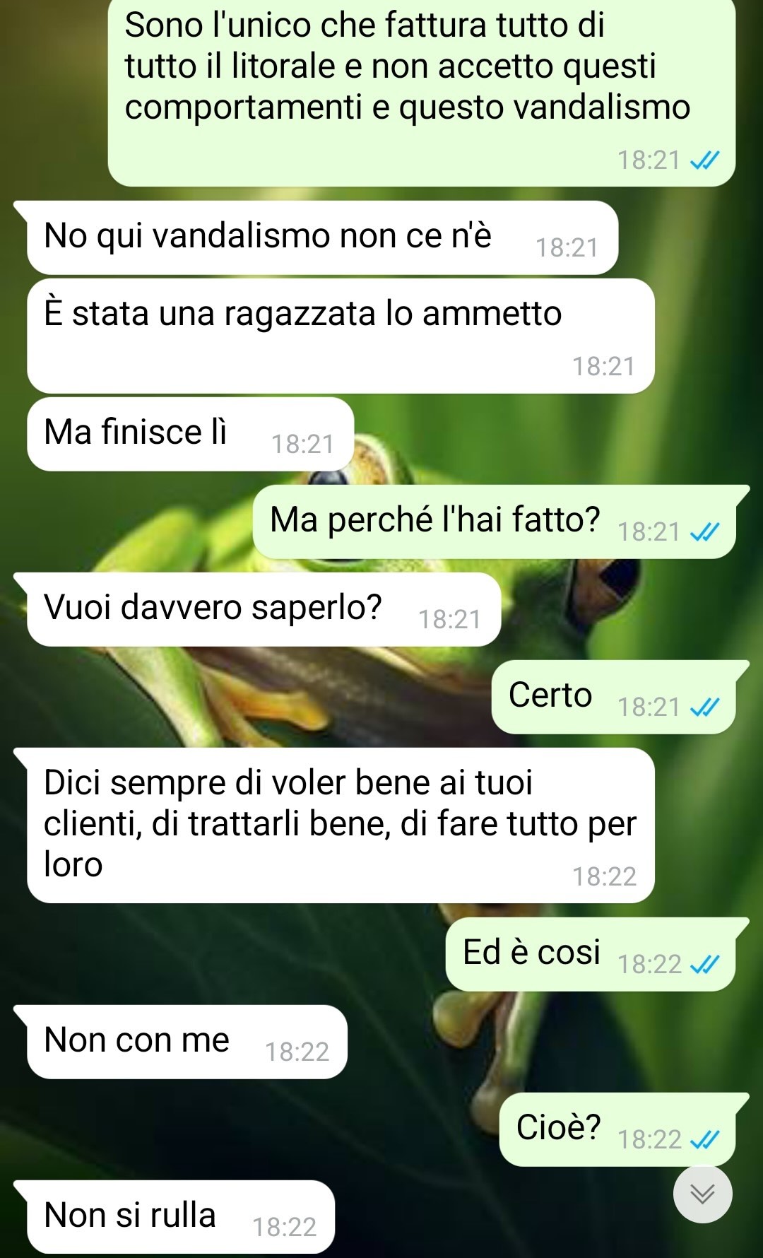 Dal punto di vista economico, spiega che i risultati sono soddisfacenti, anche se non mancano le difficoltà. Negli ultimi tempi, ad esempio, ha dovuto fronteggiare alcuni furti notturni e altri episodi spiacevoli che hanno messo alla prova la serenità della gestione. Tuttavia, quanto accaduto recentemente ha superato ogni limite.