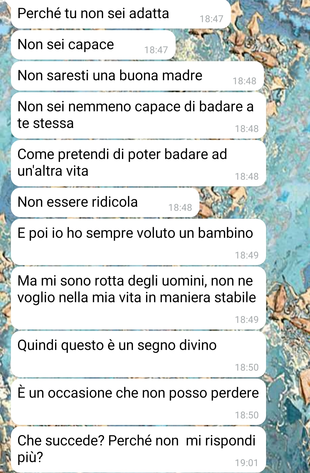 La presa di coscienza di Valentina sul suo essere stata manipolata segna un punto di svolta importante nella sua narrazione, un passo verso la comprensione e l’elaborazione di quanto vissuto. La storia di Valentina si avvicina così al suo epilogo, promettendo di svelare ulteriori dettagli su come sia riuscita a emergere da questa fase oscura, riaffermando la propria identità e autonomia. La sua esperienza sottolinea l’importanza della consapevolezza di sé e della riflessione critica nelle relazioni interpersonali, così come la capacità di riconoscere e allontanarsi da situazioni dannose.
