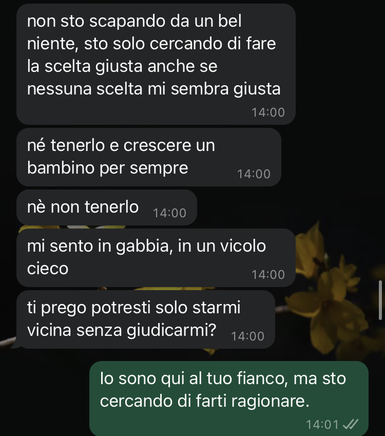 Nel racconto della nostra fan emerge il forte coinvolgimento emotivo con cui sta vivendo questa situazione. Azzurra spiega di essere convinta che la scelta che Giorgia sta valutando non sia quella giusta e racconta di temere che, se dovesse prenderla senza riflettere a fondo, potrebbe in seguito provare un grande rimorso. Il nostro fan sottolinea di aver cercato più volte di parlare con la sorella, provando ad affrontare l’argomento con calma e cercando di farle capire che esistono anche altre possibilità e altre strade da prendere in considerazione.