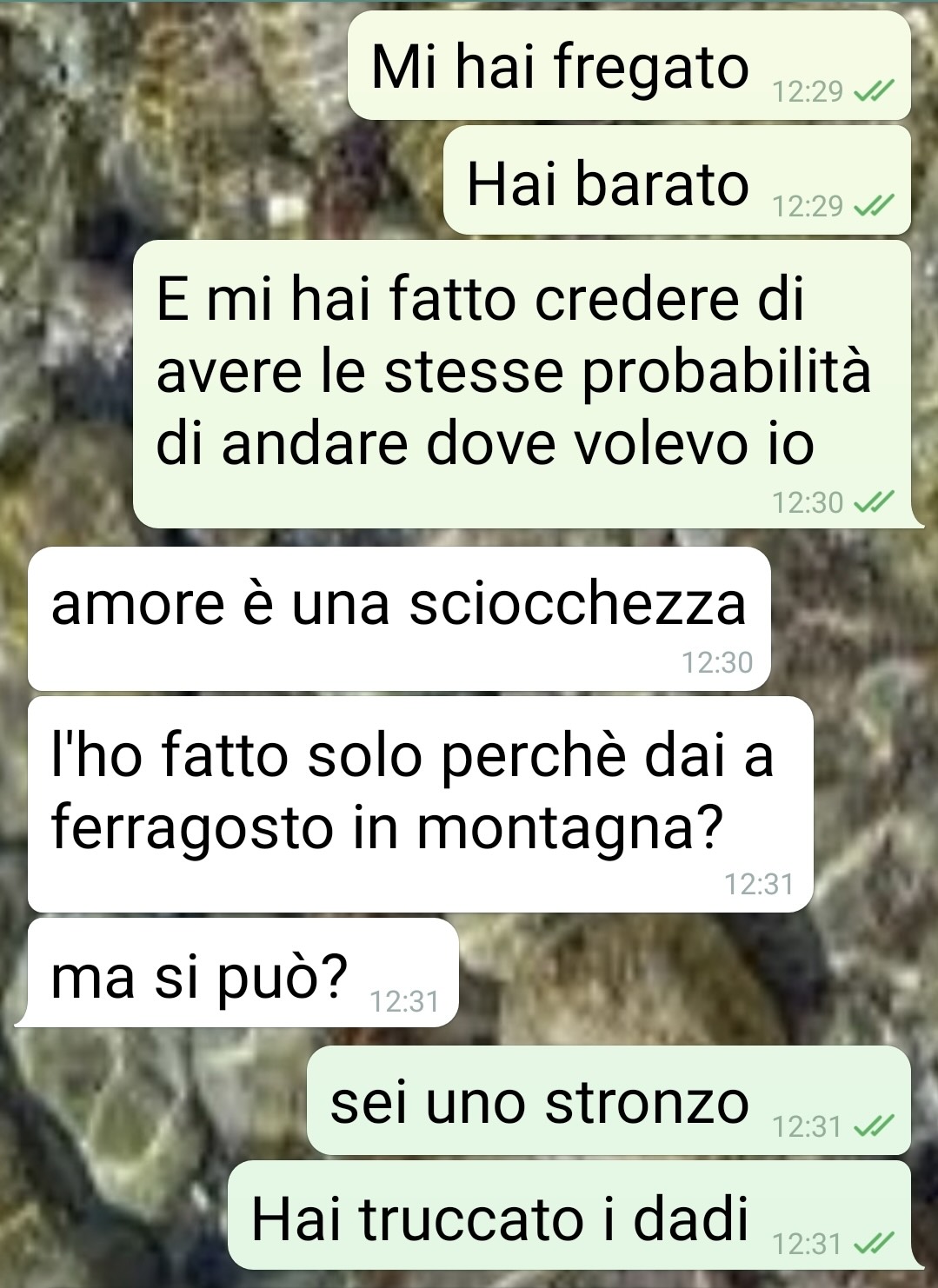 Il colpo di scena arriva però qualche tempo dopo, in un momento del tutto casuale. Mentre riordina e spolvera la scrivania del compagno, nota i dadi usati nella sfida cadere al suolo. Non si trovano nella loro scatola originale e destano subito la sua curiosità. Decide allora di lanciarli per gioco e con sua grande sorpresa ottiene quasi sempre un doppio 6. Più tiri fa, più si rende conto dell’assurdità della cosa: sono dadi truccati.