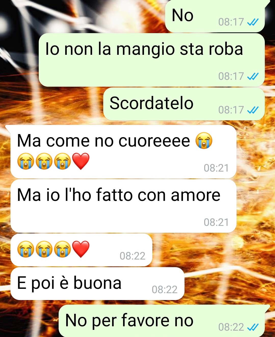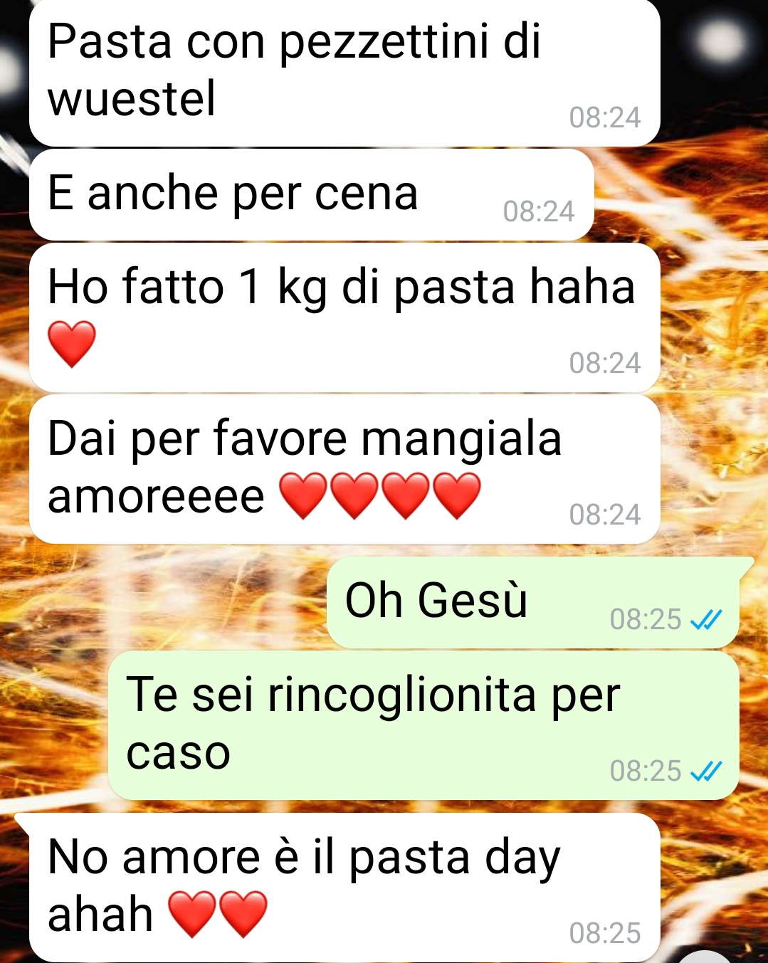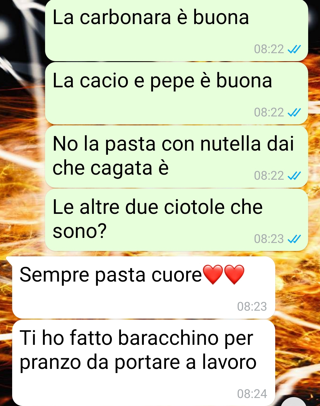 Il nostro fan Pierpaolo racconta di come la sua fidanzata Veronica, soprannominata Verry dagli amici, gli abbia preparato una sorpresa particolare. L’amico spiega che stanno insieme da molto tempo e considera la compagna la donna della sua vita, nonostante a volte lei si lasci andare a gesti che lo sorprendono. Quella mattina il follower ha potuto dormire più del solito dato che lavora nel secondo turno, e al risveglio ha trovato alcuni messaggi che Veronica gli aveva inviato prima di uscire per recarsi in ufficio.
