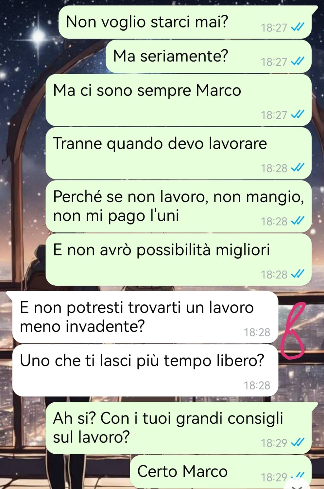 La nostra fan racconta di trovarsi in una fase intensa e impegnativa della propria vita, caratterizzata dal tentativo di conciliare il lavoro come cameriera con il percorso universitario. Una scelta che, come sottolinea, non corrispondeva all’idea iniziale di vita che immaginava, ma che rappresenta un passo necessario per costruire il proprio futuro in autonomia.