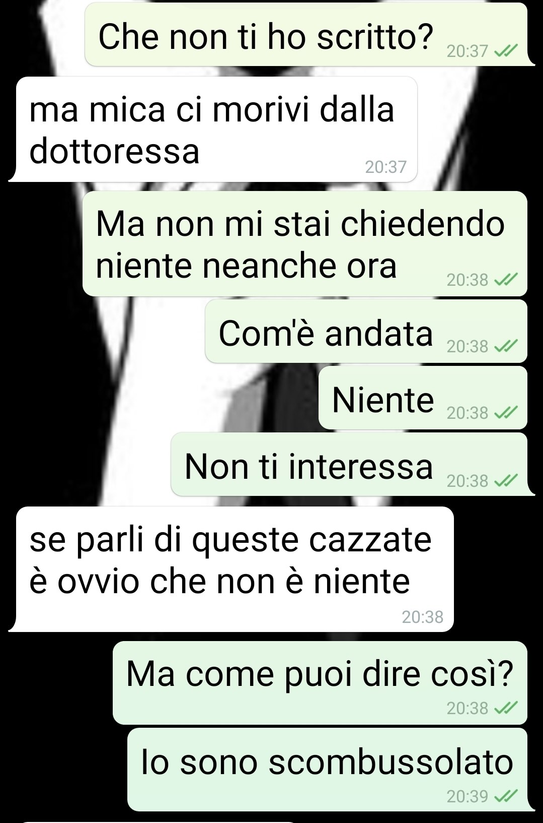 Proprio nel momento in cui lui aveva più bisogno di supporto, lei ha preferito dedicarsi ad altro, in particolare a un evento di ballo a cui non voleva rinunciare. Questo atteggiamento lo ha ferito profondamente, facendolo sentire solo e poco importante per la sua compagna. Condivide questa conversazione per sfogarsi, cercare conforto e magari ricevere qualche consiglio su come affrontare la situazione.