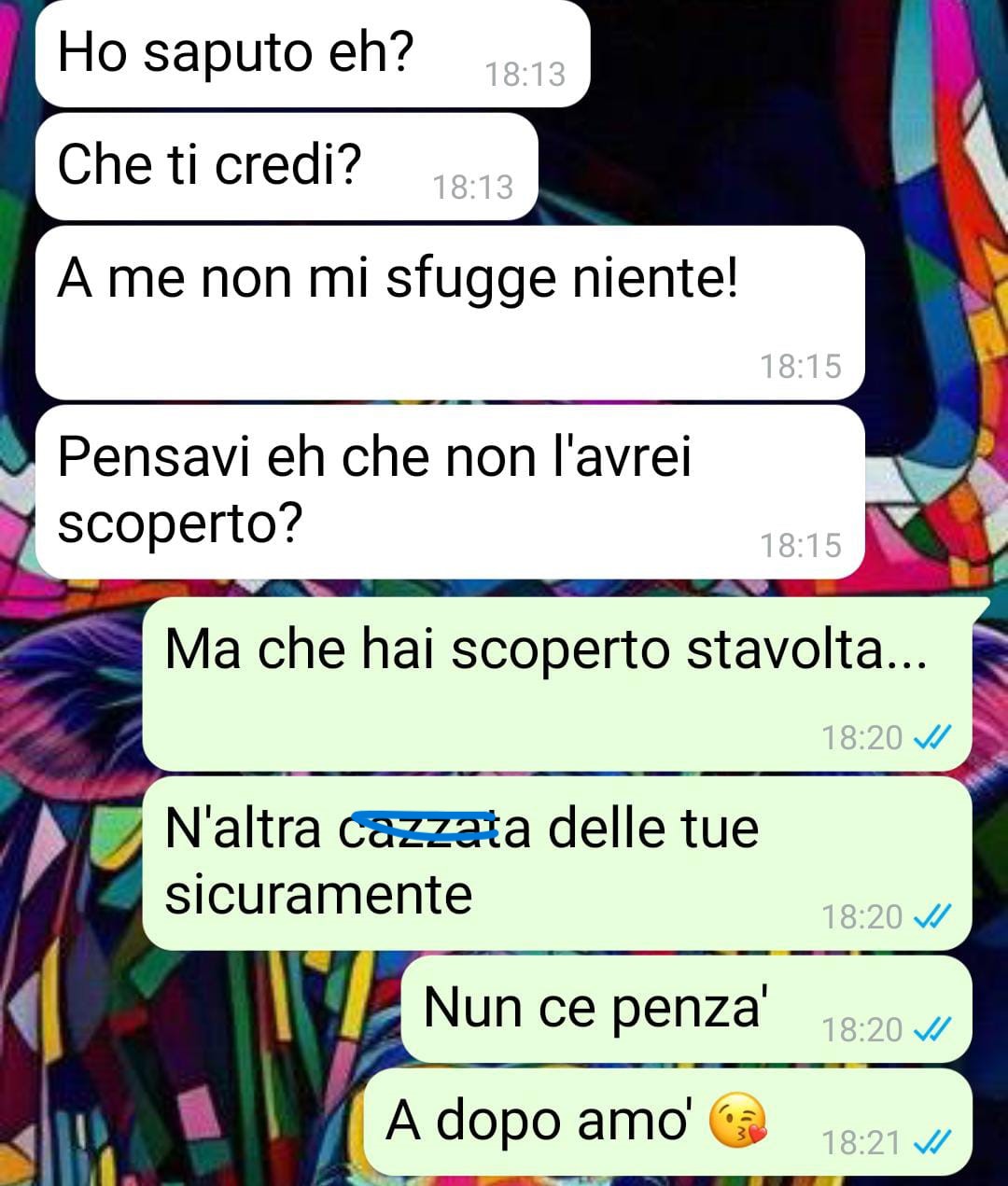 Stasera doveva esse una serata tranquilla, una di quelle in cui esci con gli amici, ti fai due risate e ti godi un po’ de tempo libero. Invece, la serata ha preso una piega che manco ve potete immaginà. Io e la mia ragazza, non stavamo passando un bel periodo. Le cose tra noi erano diventate complicate, e ogni giorno sembrava peggio del precedente. Eppure, nonostante tutto, io volevo ancora darle una possibilità. Speravo che prima o poi le cose migliorassero. Sapete com’è, quando ami qualcuno cerchi sempre di vedere il lato positivo, di credere che le cose possano sistemarsi. Lei però niente. Sembrava migliorare per un pochetto, e poi ce ricadeva… diventava più gelosa e sospettosa di prima. Qualsiasi cosa facessi sembrava un buon motivo per far scattare una lite. Stasera, mentre ero fuori con Ettore, il mio migliore amico da sempre, è arrivata la solita raffica di messaggi. Lei stava a casa a cena con l’amica sua, mentre io cercavo di rilassarmi un po’. Ma niente, la pace dura poco quando c’hai una ragazza che te fa una testa tanta con i suoi dubbi. Ecco, questa è la cronaca di come una serata tranquilla con un cocktail in mano si è trasformata in una tempesta di accuse.