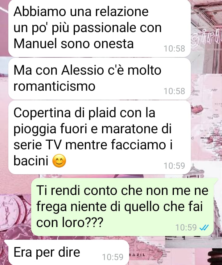 Ma ciò che è emerso successivamente dalla conversazione con Chiara ha lasciato la nostra fan senza parole. Il contenuto degli scambi ha ribaltato completamente il suo punto di vista: non si trattava solo di gelosia o provocazione. Quello che Chiara ha raccontato ha scosso profondamente la nostra amica, lasciandola disorientata, se non addirittura disgustata.