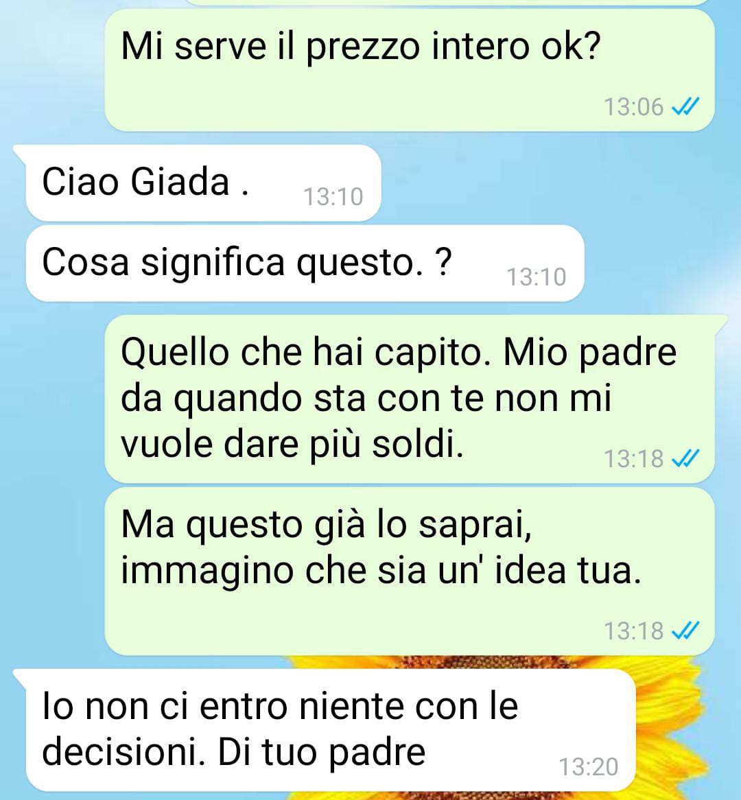 Sono fuori di me. Mio padre si sta mettendo contro di me, sua figlia, solo perché si è invaghito di questa Natalia che ha conosciuto due anni fa in uno di quei posti per ballare il valzer tra pensionati.Lei è più giovane di cinque anni e lavora ancora, mentre lui è andato in pensione anticipata. Dice che da quando stanno insieme risparmia perché lei cucina per lui e lo aiuta con la spesa, visto che da solo non sa nemmeno scegliere una mela. Prima mangiava sempre fuori o ordinava cibo a domicilio, e ora vanno pure in vacanza gratis in Liguria dai figli di lei che le prestano casa ogni tanto.Ma a me non la raccontano giusta: se risparmia così tanto, perché ha smesso di darmi soldi? Io non guadagno abbastanza per coprire tutte le mie spese e lui lo sa bene. Non posso vivere solo di affitto e cibo, ho bisogno di altro! E invece, ultimamente mi fa prediche sull’essere adulta e indipendente. Guarda caso, tutto è iniziato da quando c’è questa qui.Coincidenze? Non credo proprio. Ma questa volta gliene ho dette quattro. Sono stufa di essere la vittima di questa storia.