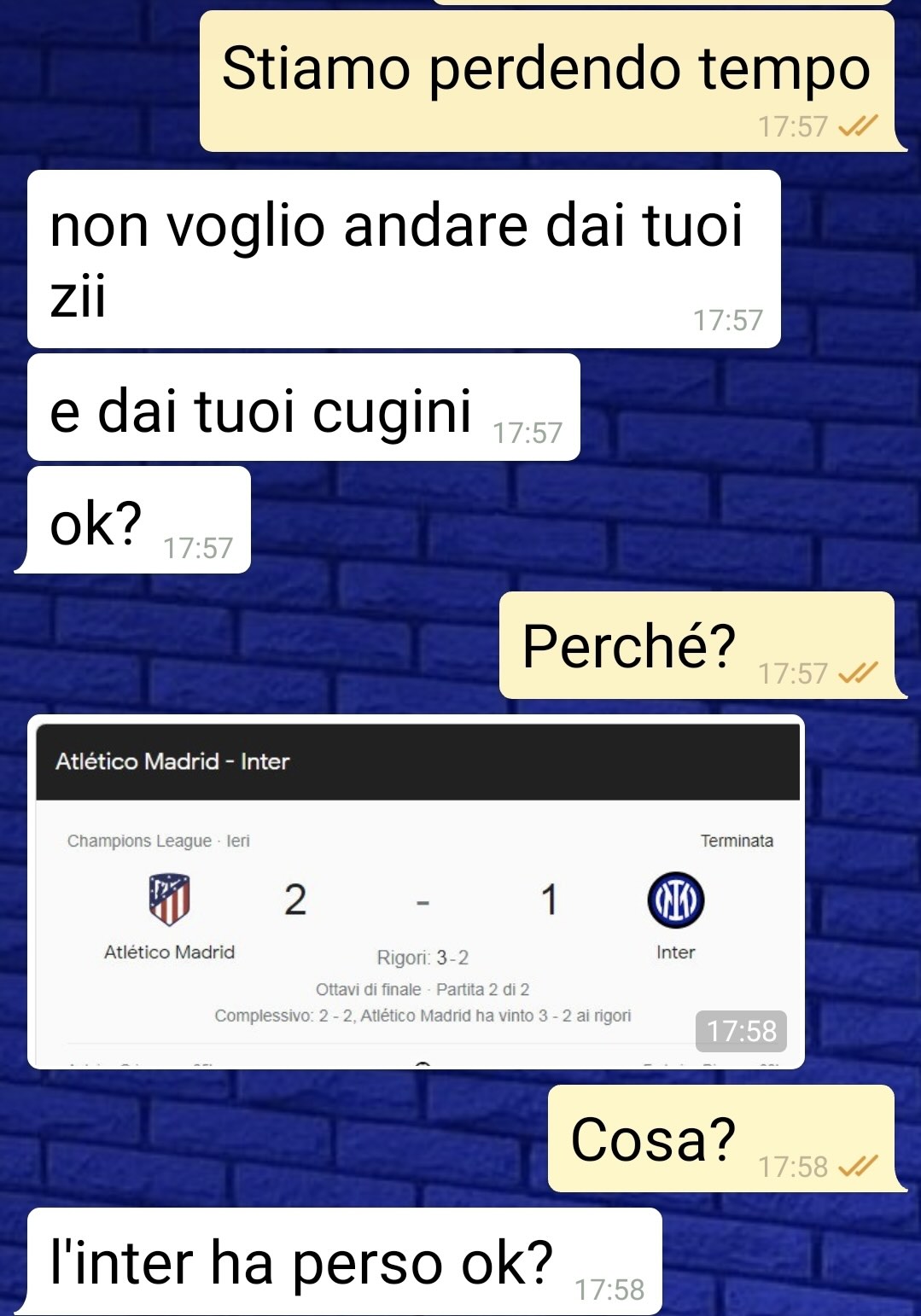 Secondo quanto scrive la nostra amica, questa non è una novità: ha avuto a che fare per tutta la vita con uomini che trasformano ogni ambito – dallo sport alla briscola col nonno – in una questione di competizione e orgoglio personale. E questa volta, a causa di una semplice sconfitta calcistica, il suo compagno ha addirittura saltato un appuntamento fondamentale: la consegna degli inviti di nozze ai parenti.