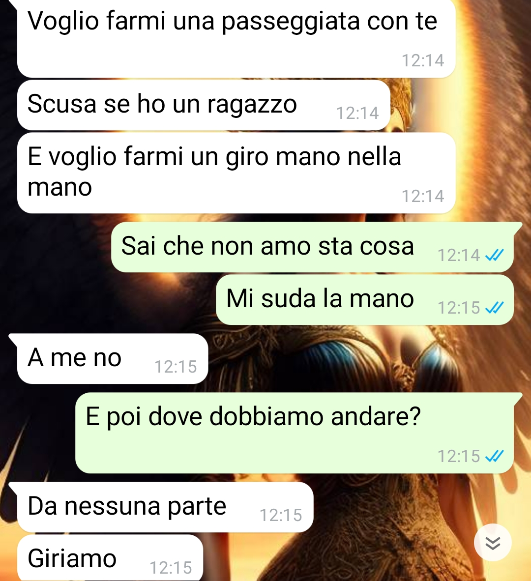 Sono Francesco e sono un altruista. So che detto così sembra una cosa negativa, manco fossi agli alcolisti anonimi, ma tutti mi dicono che eccedo troppo con l’essere buono, altruista e gentile, al punto che mi inimico le persone. Io la trovo una cosa assurda da fare, quella di arrabbiarsi perché sono uno gentile, ma i miei amici mi trovano cringe o stravagante perché faccio i complimenti ai ristoratori quando andiamo a mangiare fuori o ai camerieri se ci portano le cose al tavolo o se c’è qualcuno per strada che ha bisogno io aiuto. Mi è capitato di essere in giro con la mia comitiva e una signora anziana era con i sacchi della spesa, ma vedevo che aveva difficoltà e mi sono avvicinato e l’ho aiutata a portarli fin sotto casa sua. Tutti i miei amici mi hanno detto che è stato imbarazzante e orribile, tant’è che con il problema che sto avendo con la mia ragazza mi dicono tutti che ho torto marcio io, ma per me è una cosa giusta. In ogni caso io sono uno che lavora, anche se sono giovane, e sto con Alba, una ragazza con la quale sto bene, ma che mi tratta piuttosto male. Lei non studia e non lavora e vuole che io smetta di lavorare per stare in sua compagnia o per fare cose con lei quando io non potrei. Poi mi faccio intenerire e le dico ok e l’ultima volta è successa una cosa che sinceramente non credevo mi avrebbe procurato così tanti guai.