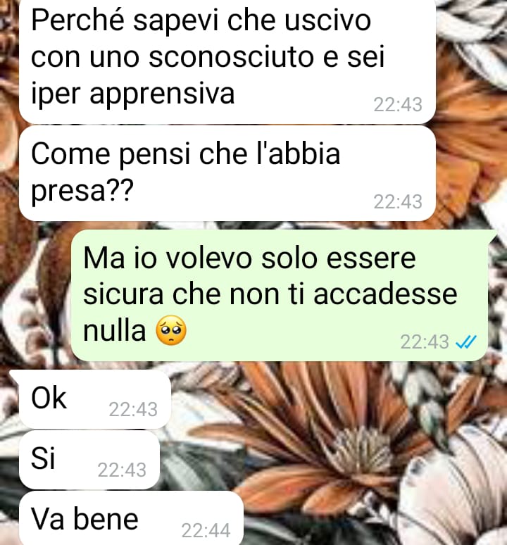 Tutto ha avuto inizio in un giorno come tanti, quando l’amica le ha scritto un messaggio per comunicarle di essere tornata a casa dopo un primo appuntamento con un ragazzo. La nostra lettrice, incuriosita e felice per lei, le ha subito chiesto com’era andata, con l’entusiasmo e la complicità tipica di due amiche affiatate. Quella che si aspettava essere una chiacchierata spensierata si è però trasformata in un momento di grande amarezza: la sua amica le ha risposto dicendosi molto arrabbiata nei suoi confronti.