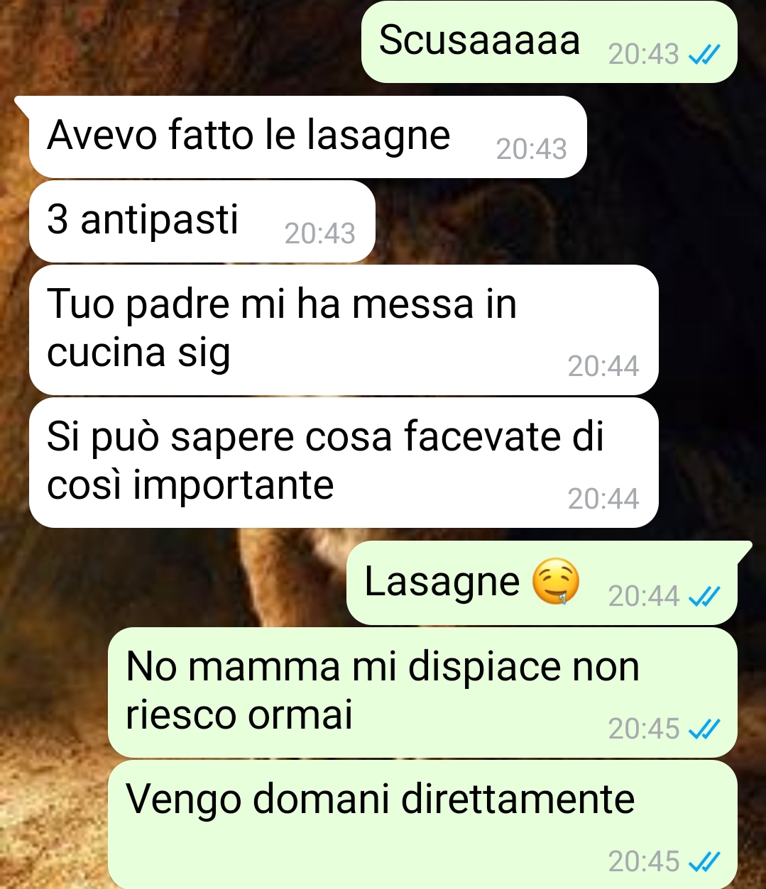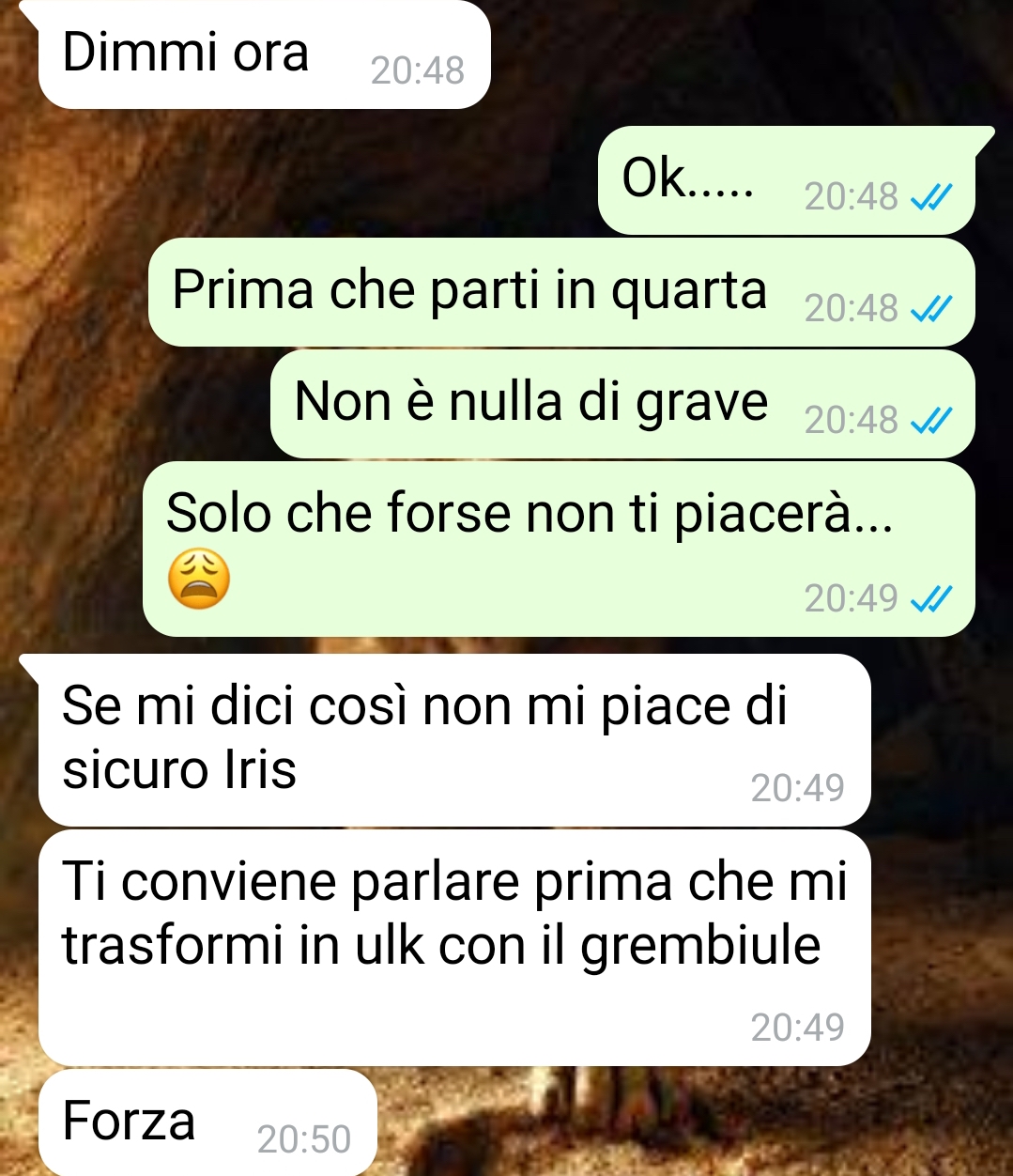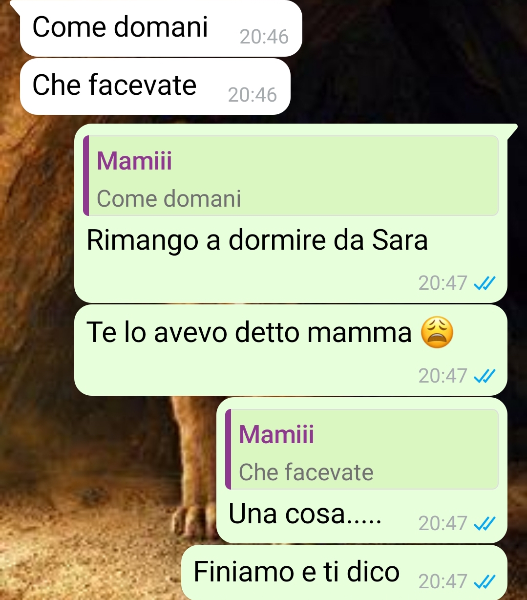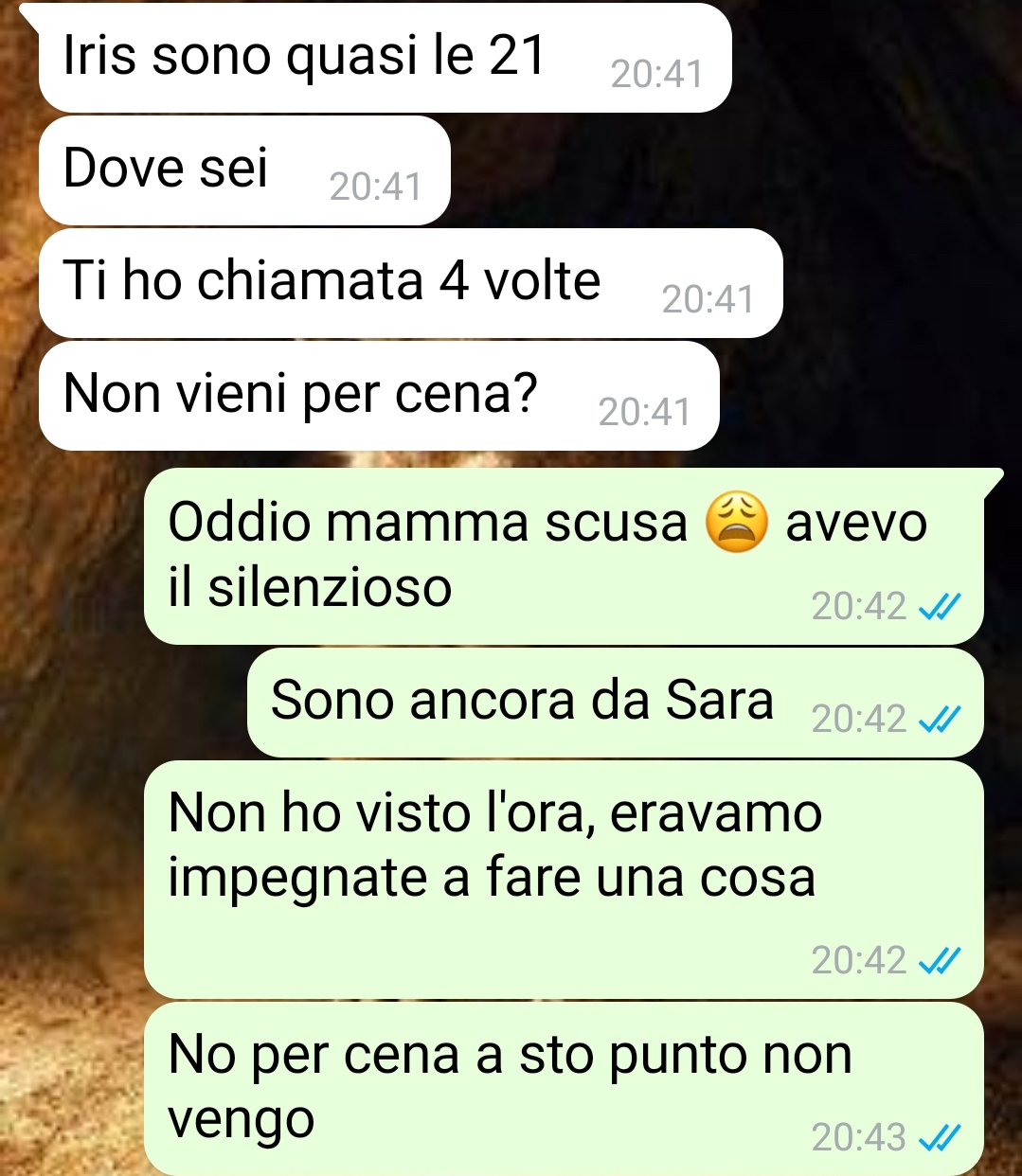 Mi chiamo Iris e ho quasi 21 anni, frequento l’università e devo quasi iniziare il secondo anno. Ok, sembra che vi stia mandando il curriculum, in realtà voglio mandarvi questa conversazione con mia madre Susanna che risale a quella volta in cui l’ho fatta arrabbiare di brutto. Anzi, io e Sara, la mia migliore amica, l’abbiamo fatta arrabbiare, non solo io. Dovete sapere che io vivo ancora con i miei, per ora, perché frequento l’università, ma lavoro anche ogni tanto e do ripetizioni per potermi permettere qualche sfizio, qualche uscita, dei viaggi o qualsiasi altra cosa per cui non voglio dover chiedere i so ldi ai miei. Io e Sara frequentiamo la stessa università e andiamo molto bene. Quindi, ci siamo organizzate una sera per vederci a casa sua e farci un regalo. Ovviamente il tutto all’insaputa dei nostri genitori, perché volevamo dirglielo a cose fatte. Beh questa è mia madre che scopre cosa facevamo. Ho dovuto dirglielo per forza e non ha reagito nel migliore dei modi…