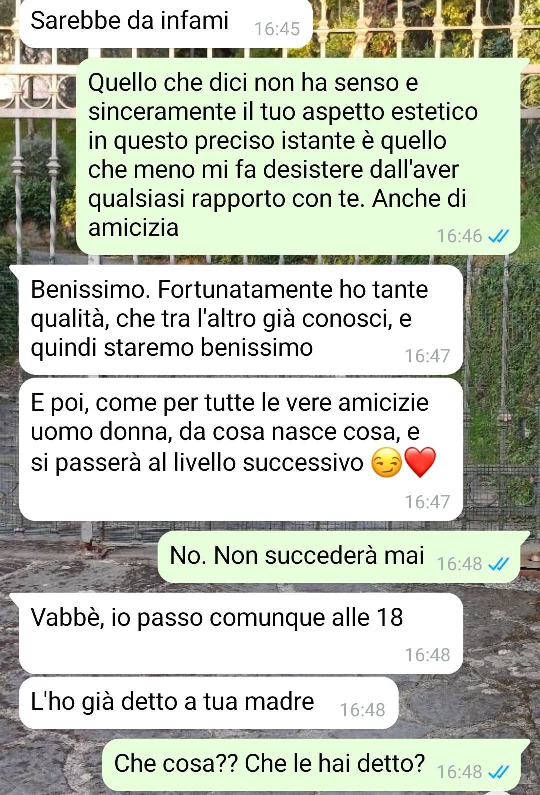 La nostra amica afferma di aver comunicato la propria decisione in modo chiaro, spiegando di non essere interessata a proseguire. Era convinta di aver chiuso la questione in maniera rispettosa e definitiva. Tuttavia, secondo il suo racconto, il ragazzo non avrebbe accettato facilmente la fine della conoscenza.