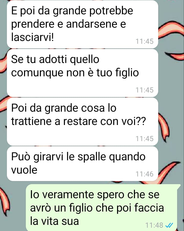 Il motivo della conversazione era, all’inizio, positivo e carico di emozioni: Teresa è in dolce attesa, e la nostra amica si è detta sinceramente felice per lei, come ogni volta che una persona cara realizza un sogno importante. La felicità iniziale, però, ha presto lasciato spazio al disagio e allo stupore.