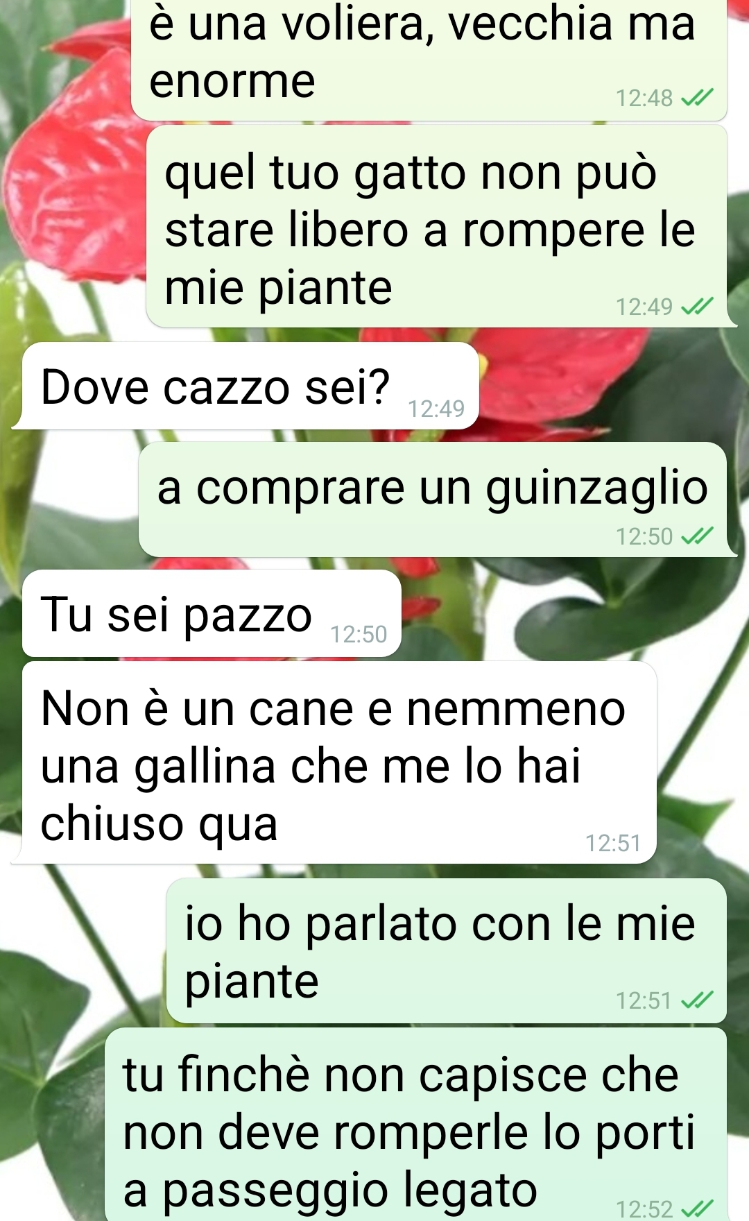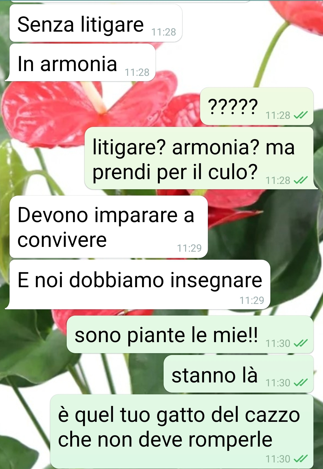 Il nostro amico si chiede se avrebbe dovuto restare inerme di fronte a quanto accaduto, sia rispetto ai danni causati dal gatto sia rispetto alla reazione di Melania. Per lui, la questione non riguarda solo le piante, ma anche il rispetto delle sue passioni e degli spazi condivisi.