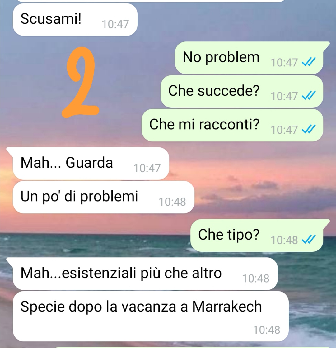 Ciao a tutti, mi chiamo Chiara e qualche settimana fa mi è successa una cosa che non avrei mai creduto possibile. Ho dovuto io stessa rileggere i messaggi più di una volta per accertarmi di non avere letto male. Sì perché mi è stata chiesta una cosa che non ha alcun senso! Tutto ha avuto inizio quando mi ha ricontattata una mia amica di vecchia data che non sentivo da un po’. Noi ci conosciamo dai tempi del liceo, lei è sempre stata una persona seria, equilibrata, ma quest’anno tutto a un tratto le è successo qualcosa di strano. Ultimamente quando le mandavo dei messaggi, lei non rispondeva quasi mai e se lo faceva la risposta avveniva dopo diversi giorni. Negli ultimi mesi ci siamo quindi viste poco ma sentivo che stesse succedendo qualcosa… Poi un giorno mi riscrive… capisco subito che ha bisogno di un favore, ma giuro che mai mi sarei immaginata il favore che stava per chiedermi. Vi lascio la nostra chat surreale e lascio a voi ogni giudizio. È chiaro che la mia amica non stia bene…e purtroppo queste situazioni sono sempre più frequenti!