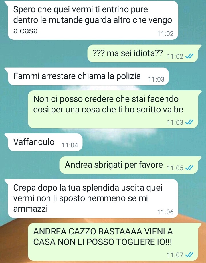 La causa? Andrea, che avrebbe deciso di introdurre questi ospiti indesiderati per via di una delle sue “idee di business” che Elisa descrive come ridicole e impraticabili. La fan chiede un parere a chi legge, allegando una chat appena inviata, per sapere se anche altri avrebbero reagito allo stesso modo di fronte a una situazione così particolare e, a suo dire, assurda. La vicenda ruota attorno alla difficoltà di gestire scelte discutibili e poco convenzionali del marito che, in questo caso, hanno avuto un impatto diretto sul loro quotidiano.