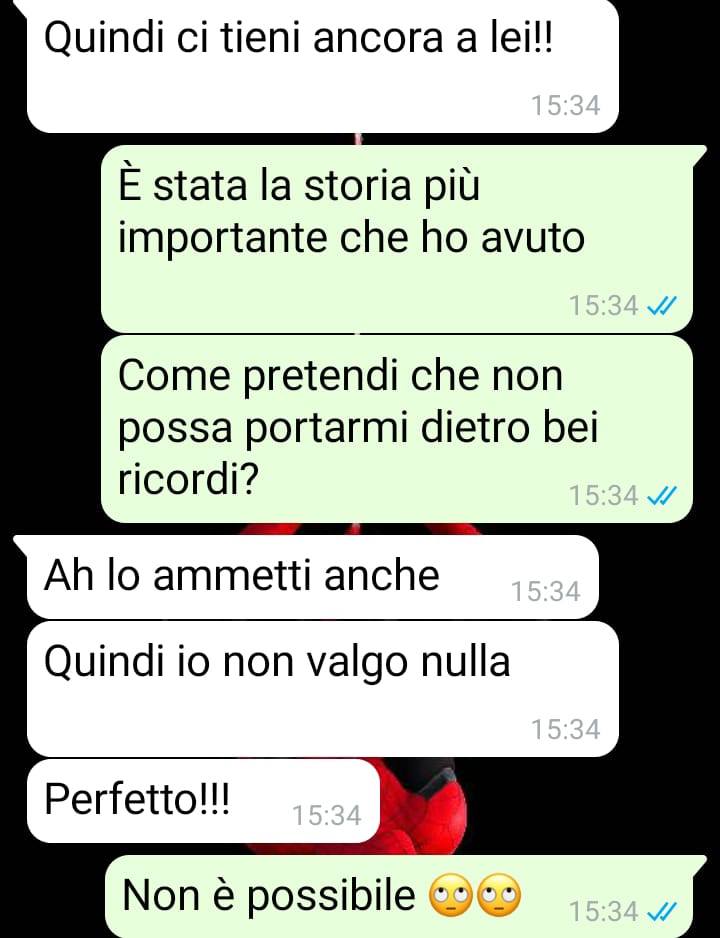 Il nostro amico sottolinea quanto questa discussione abbia riportato a galla stereotipi e luoghi comuni, soprattutto in riferimento alla gelosia e al vittimismo, che – a suo parere – la sua compagna ha pienamente incarnato. È convinto che il passato non debba per forza essere cancellato per poter andare avanti e che i ricordi non siano un segno di attaccamento, ma piuttosto di consapevolezza.