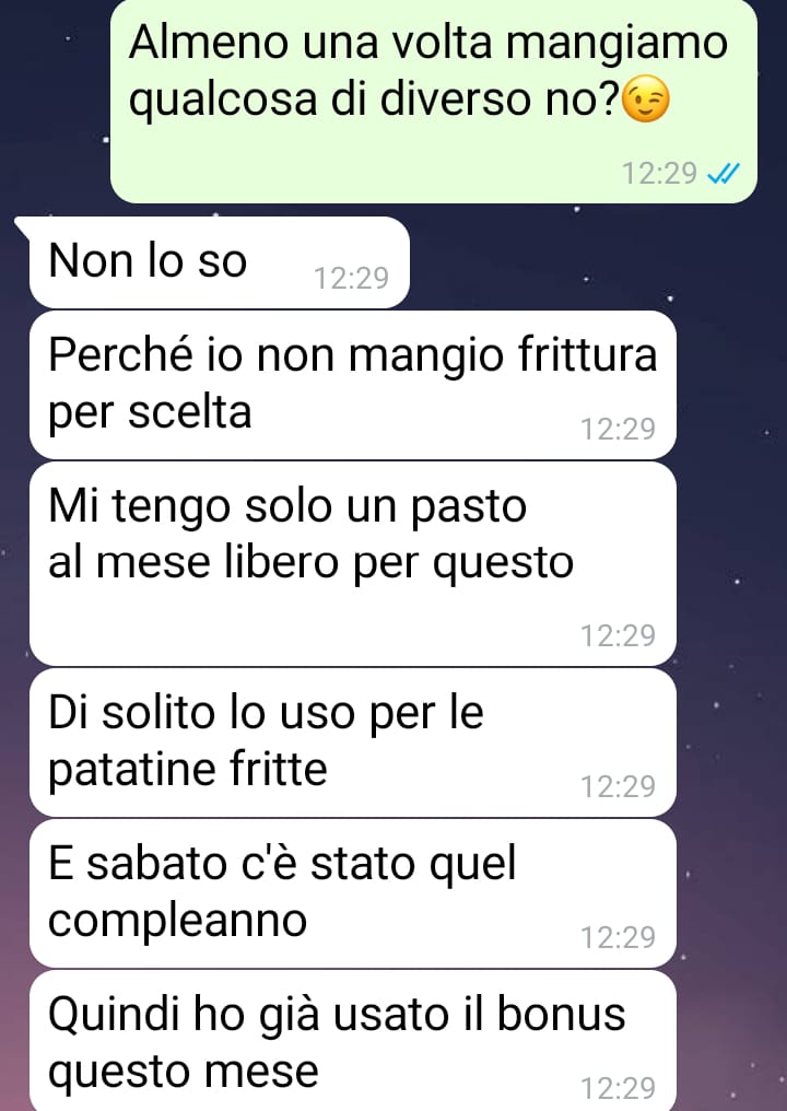 La nostra fan condivide una conversazione che nasce da un sentimento di delusione profonda nei confronti di una persona che considerava un’amica vera. Spiega subito quanto per lei le amicizie siano importanti, un valore centrale nella sua vita, che cerca di vivere con intensità e sincerità. Tuttavia, ammette che spesso questa apertura e questo attaccamento finiscono per tradursi in grandi delusioni, proprio come è successo in questo caso.