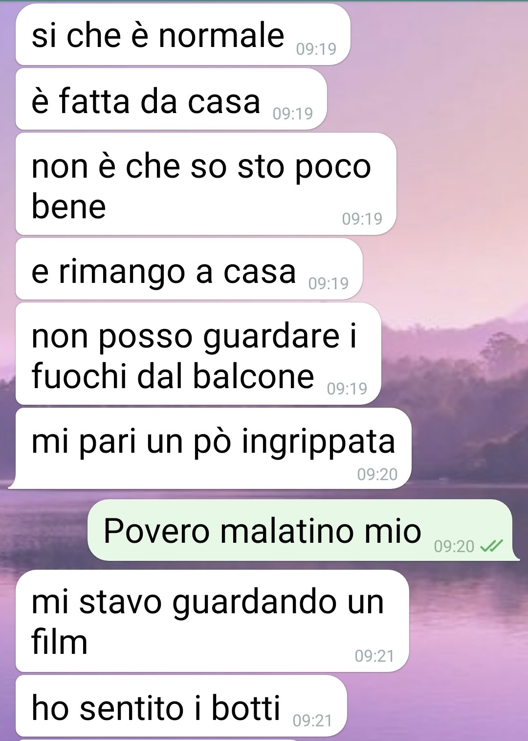 Il mio fidanzato ha postato una foto innocente, di festa, appena ieri sera. Ma senza saperlo ha scoperchiato il vaso di pandora. E scatenato la mia ira. Io sono molto più leggera oggi, mi sono liberata di un peso. 75 chili di mer** che mi portavo addosso da quasi due anni. Parlo di quel coso inutile che è stato il mio fidanzato fino a ieri alle 23. Perché vi dico questo? Ovvio che ha combinato qualcosa. Adesso lo andiamo a scoprire tutti insieme, basta leggere gli screen che vi invito a pubblicare. Povero cucciolo. Una giornata davvero di mer** la sua. Con questo caldo, i condizionatori, gli sbalzi di temperatura si è preso un bel raffreddore. Saggia decisione rimanere a casa a vedere un film. E poi che culo! I fuochi d’artificio sparati proprio davanti al suo balcone! Cosa c’è di male a fare una foto e postarla? Ma niente, se non che la vedo io. Che ne ho viste anche altre. E che vedo anche tanto altro. E che oltre al danno lo beffo pure.