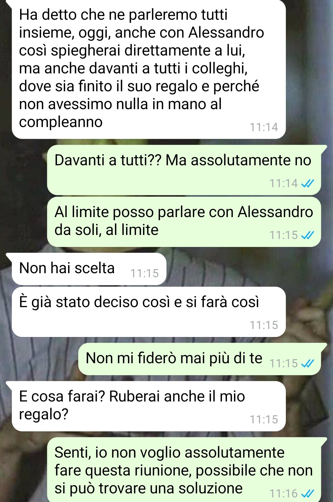 Il nostro fan racconta di una situazione lavorativa complessa in cui si è trovato coinvolto, ammettendo le proprie responsabilità ma sottolineando di aver agito sempre in buona fede, senza l’intenzione di recare danno ad altri. L’amico descrive come si sia ritrovato in circostanze difficili che hanno portato a incomprensioni con i colleghi, in particolare con Giulio, una persona che inizialmente considerava un amico fidato ma che si è rivelata diversa dalle sue aspettative. La delusione del follower è evidente quando parla di questo collega, definendolo una persona viscida che ha tradito la sua fiducia.