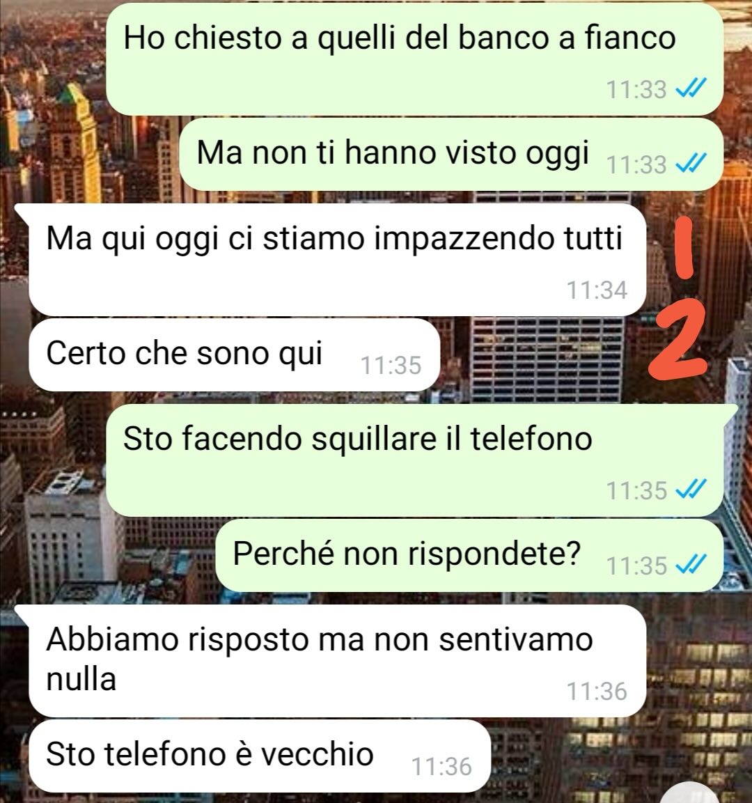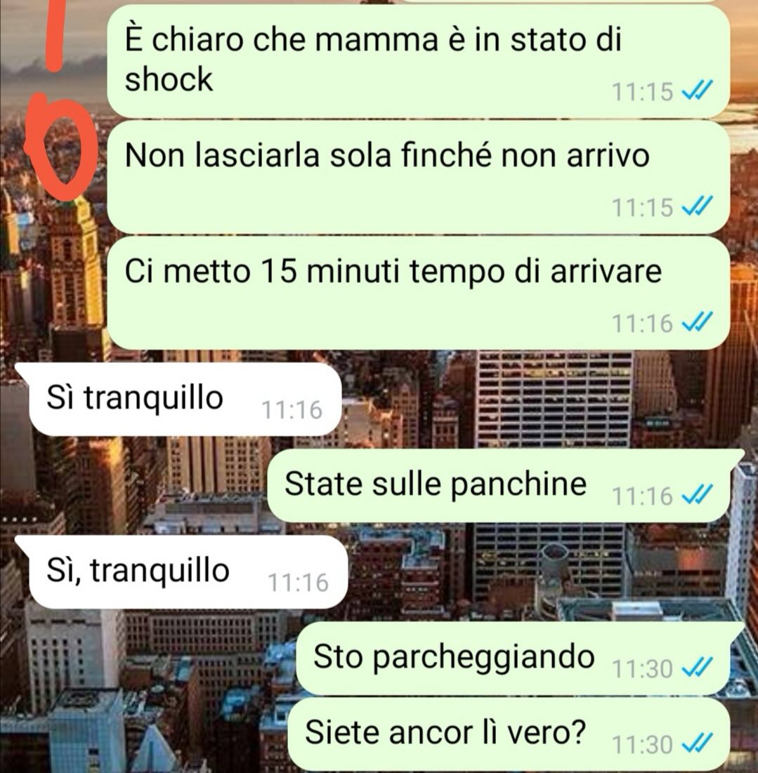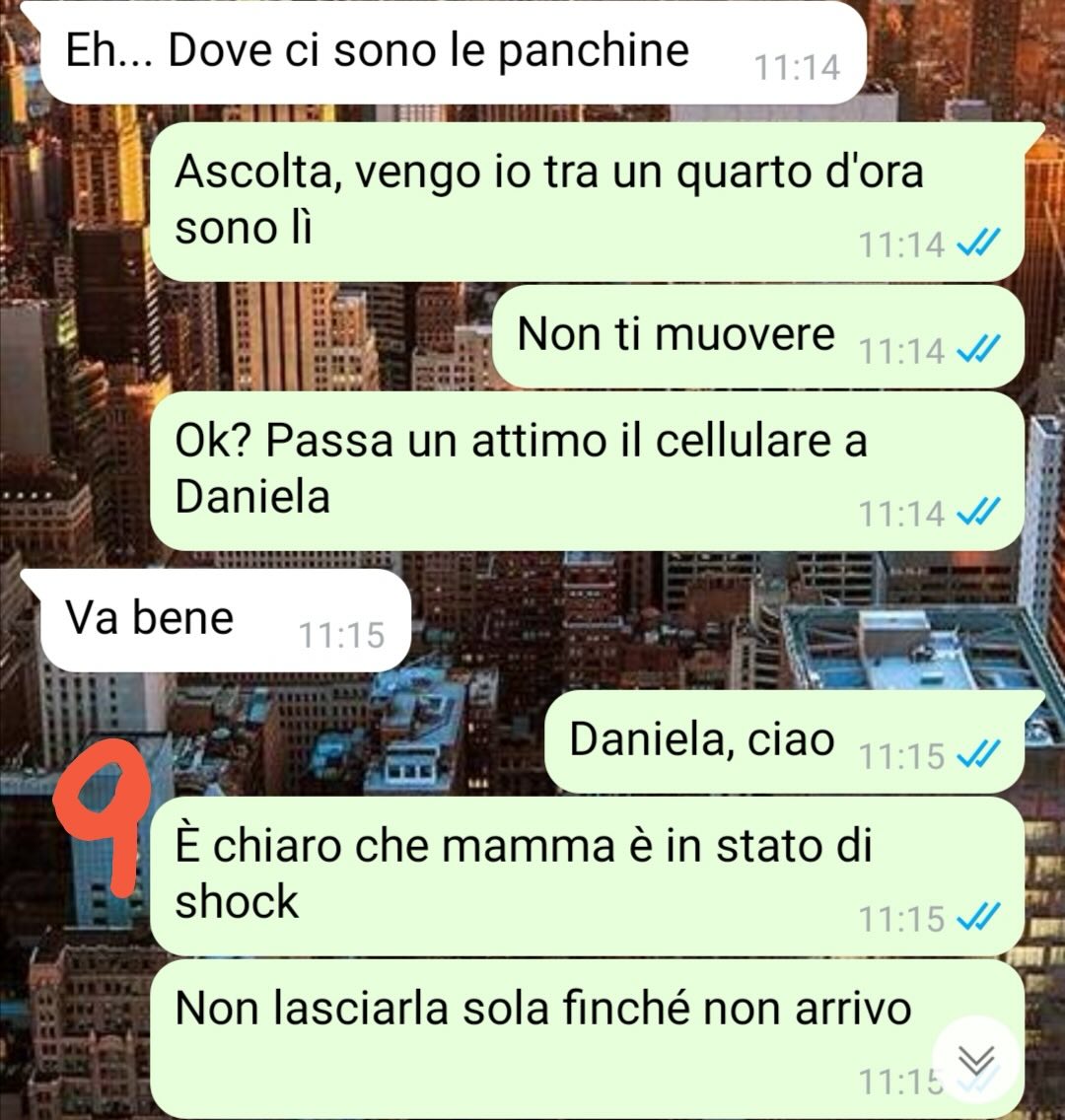 La voce dall’altra parte è quella di sua madre. Dice di scrivergli dal telefono di un’amica, spiegando in modo concitato che le hanno appena rubato il portafoglio e il cellulare al mercato. Il nostro follower, colto alla sprovvista, cerca di mantenere la calma, capisce che la madre è in stato di shock e le suggerisce di contattare il padre, perché in quel momento non può lasciare l’ufficio.