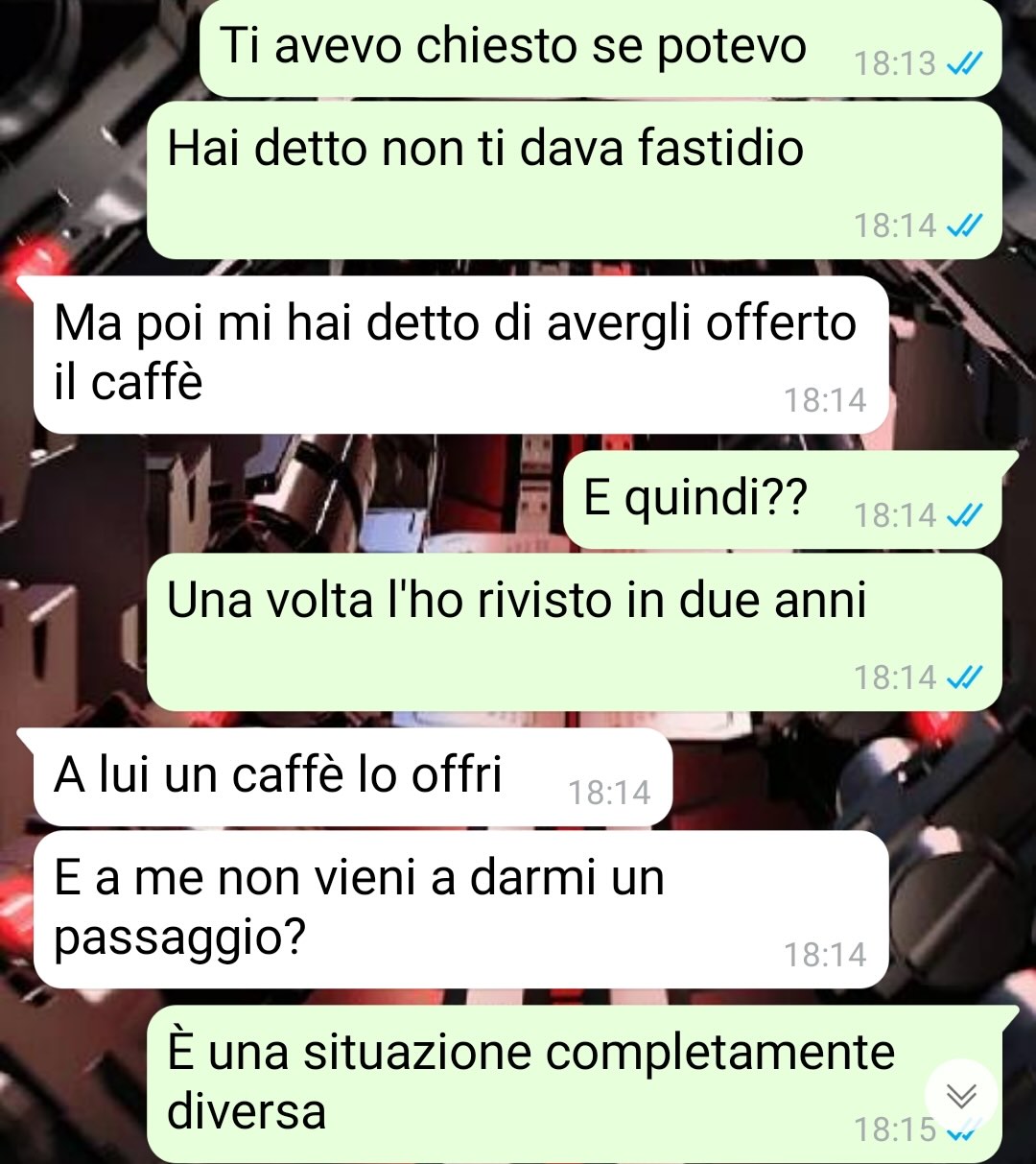 La nostra fan, Isabella, ha deciso di condividere con i lettori una conversazione avvenuta proprio oggi con il suo ragazzo, con il quale ha una relazione che dura ormai da due anni. Una relazione che, a detta della nostra follower, le ha causato non poche difficoltà, soprattutto a livello emotivo ed economico.
