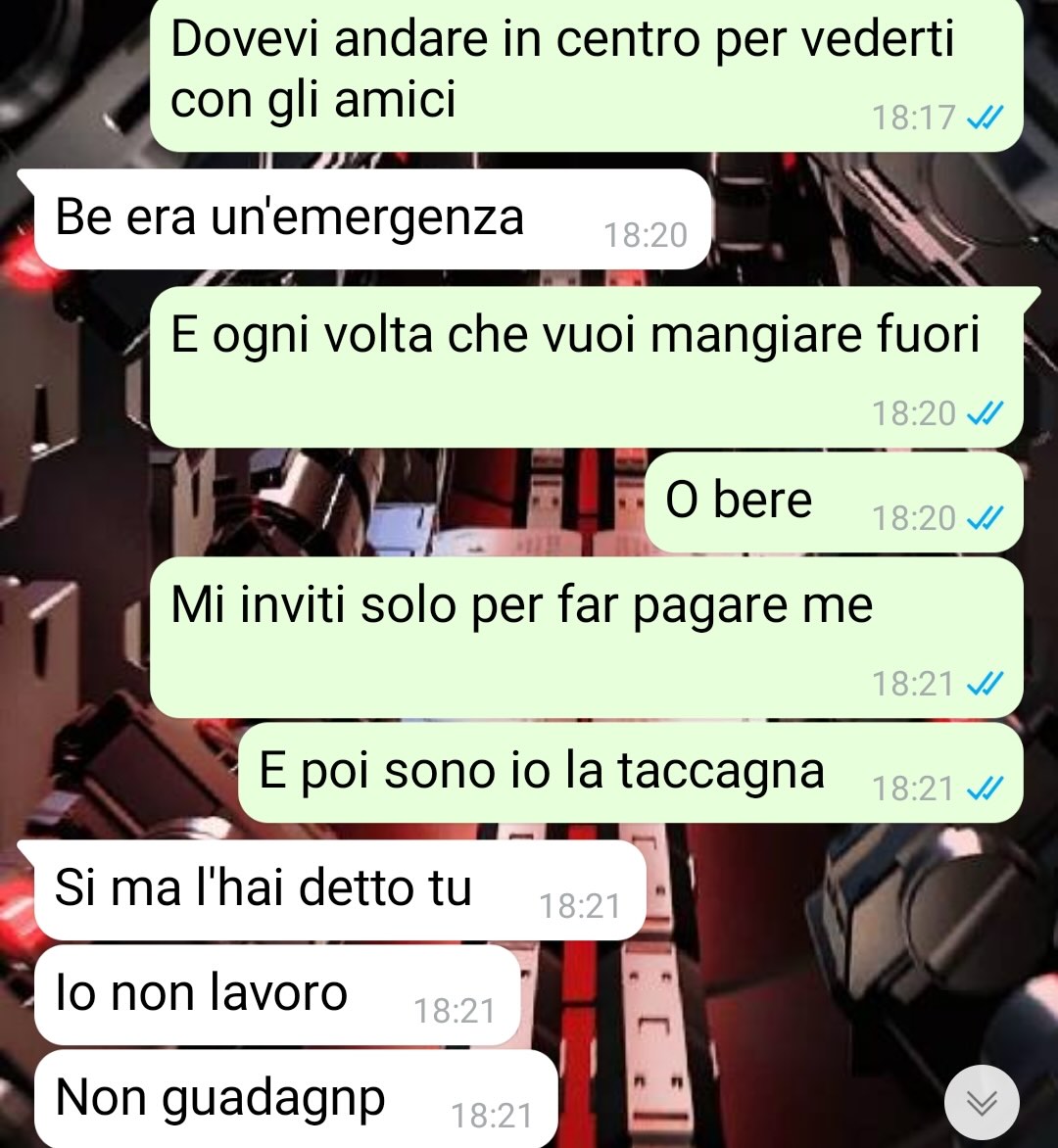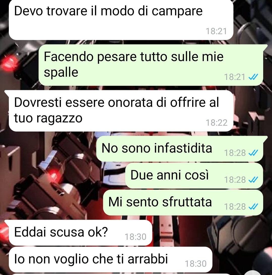 Secondo il racconto della nostra fan, lui ha la sua stessa età ma non lavora, non ha ambizioni concrete e continua a vivere con i genitori senza mostrare alcuna intenzione di cambiare rotta. In questi due anni, Isabella ha notato che il compagno si fa sentire principalmente quando ha bisogno di qualcosa, spesso approfittando della sua disponibilità e della sua pazienza.