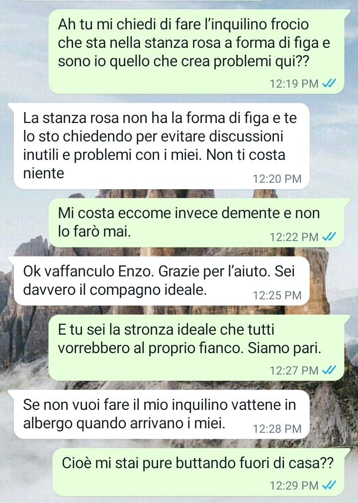 Enzo, amareggiato e profondamente arrabbiato, considera la proposta della compagna come un atto irrispettoso e offensivo. Si sente sminuito e tradito da questa situazione, trovando assurdo che Flora gli chieda di fingere di essere un’altra persona piuttosto che presentarlo semplicemente per quello che è. Ora chiede consiglio a chi legge, cercando di capire se la sua reazione sia esagerata o giustificata, e se sia davvero corretto assecondare un simile compromesso per rispetto alla relazione o se sia meglio mantenere fermo il proprio punto.