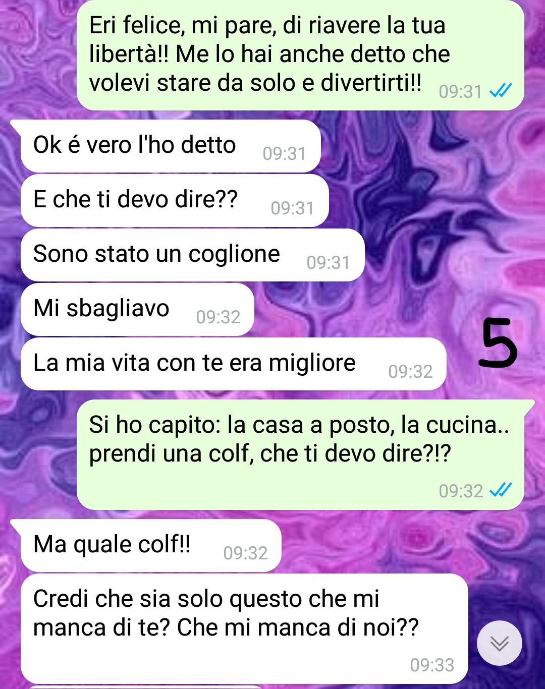 Non ci sono figli di mezzo, e il racconto della nostra follower parte da un quadro di apparente serenità: un matrimonio che, fino a un certo punto, sembrava funzionare. Tuttavia, a un certo momento, il suo ex marito ha iniziato a mostrare segni evidenti di insofferenza. Le sue parole parlavano di soffocamento, di una vita di coppia che non sentiva più sua, di un desiderio di “godersi gli ultimi scampoli di gioventù” — un’espressione che la nostra amica commenta con ironia, visto che lui ha quarant’anni.