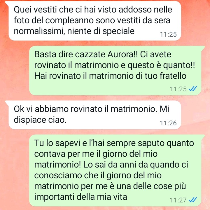 Secondo quanto anticipa, il contenuto della discussione è carico di tensione e culmina con un vero e proprio colpo di scena, che Marta definisce di una “cattiveria inaudita”. La scelta di parole è forte e fa intuire che ciò che Aurora ha fatto – o detto – non è stata una semplice disattenzione o un errore involontario, ma un gesto calcolato e, secondo lei, profondamente irrispettoso.