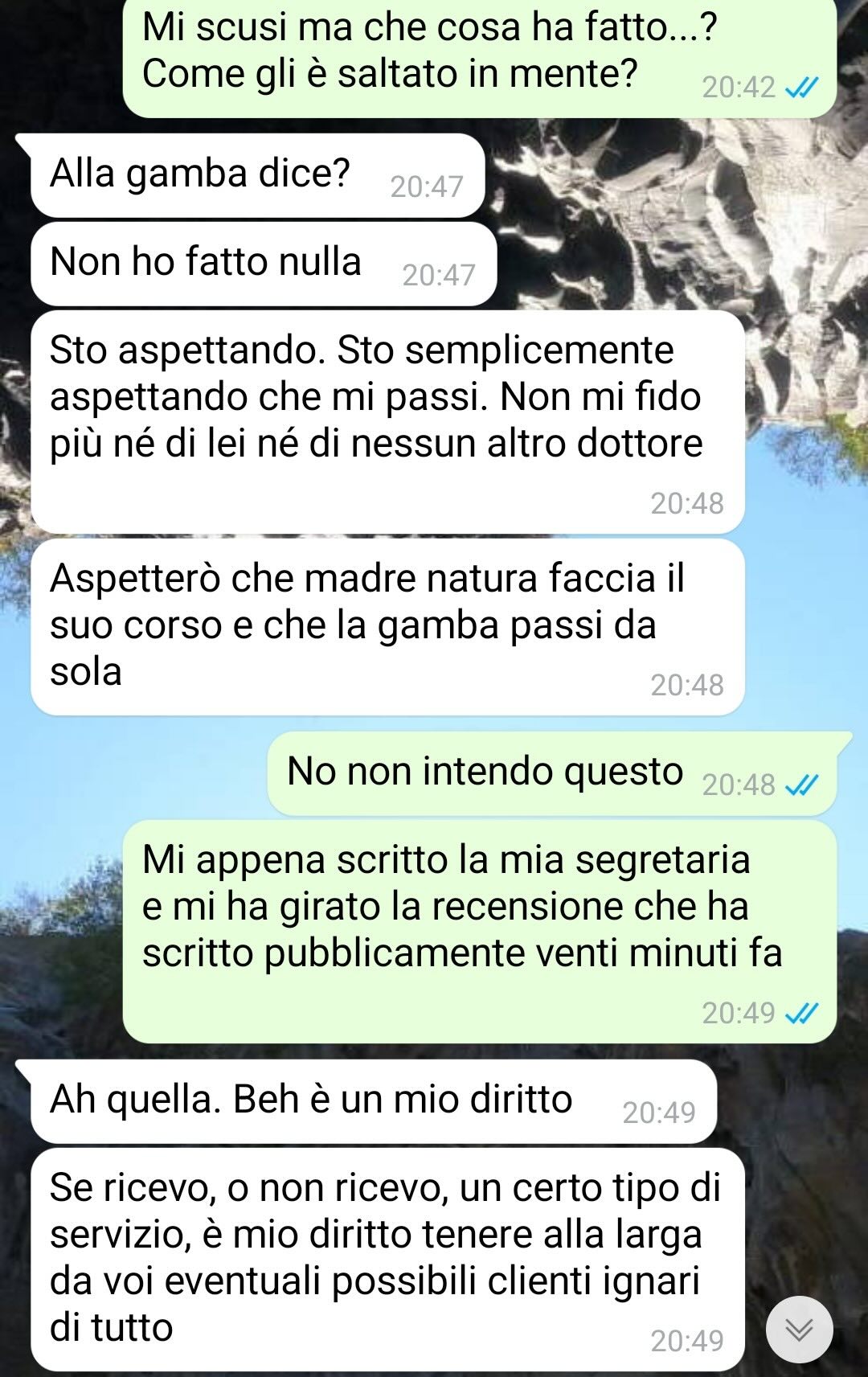 Qualche giorno dopo, però, il paziente torna a scrivergli su WhatsApp. Inizia a insinuare che un nuovo problema fisico possa essere stato causato proprio dalla seduta fisioterapica precedente. Un’accusa che, per il nostro follower, risulta del tutto infondata, sia per natura del trattamento che per i tempi coinvolti.