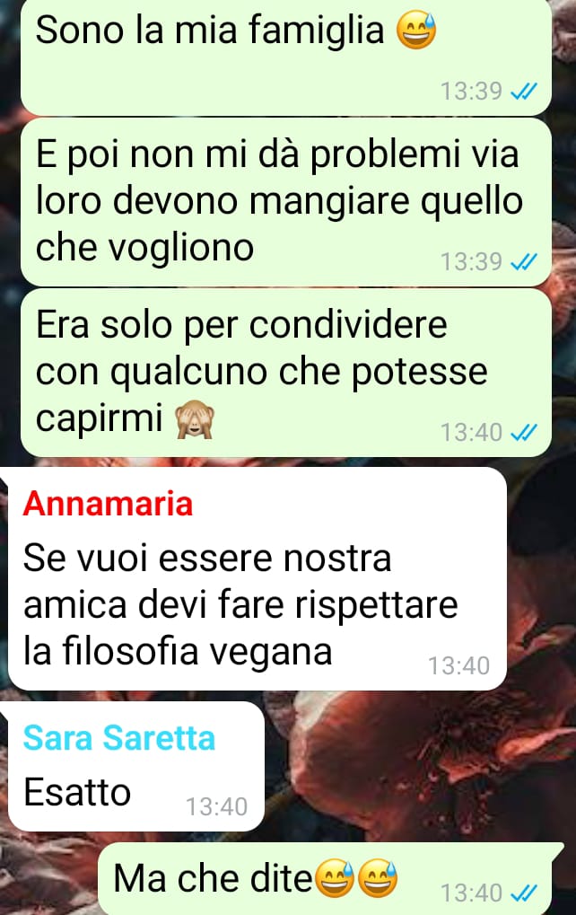 Qualche mese fa ha deciso di fare un passo di coraggio e ha scaricato un’applicazione per cercare amicizie nella sua città, riuscendo finalmente a conoscere altre ragazze vegane, con cui ha iniziato a uscire regolarmente almeno una volta a settimana, ritrovando finalmente quel senso di appartenenza e serenità che le era mancato per anni.