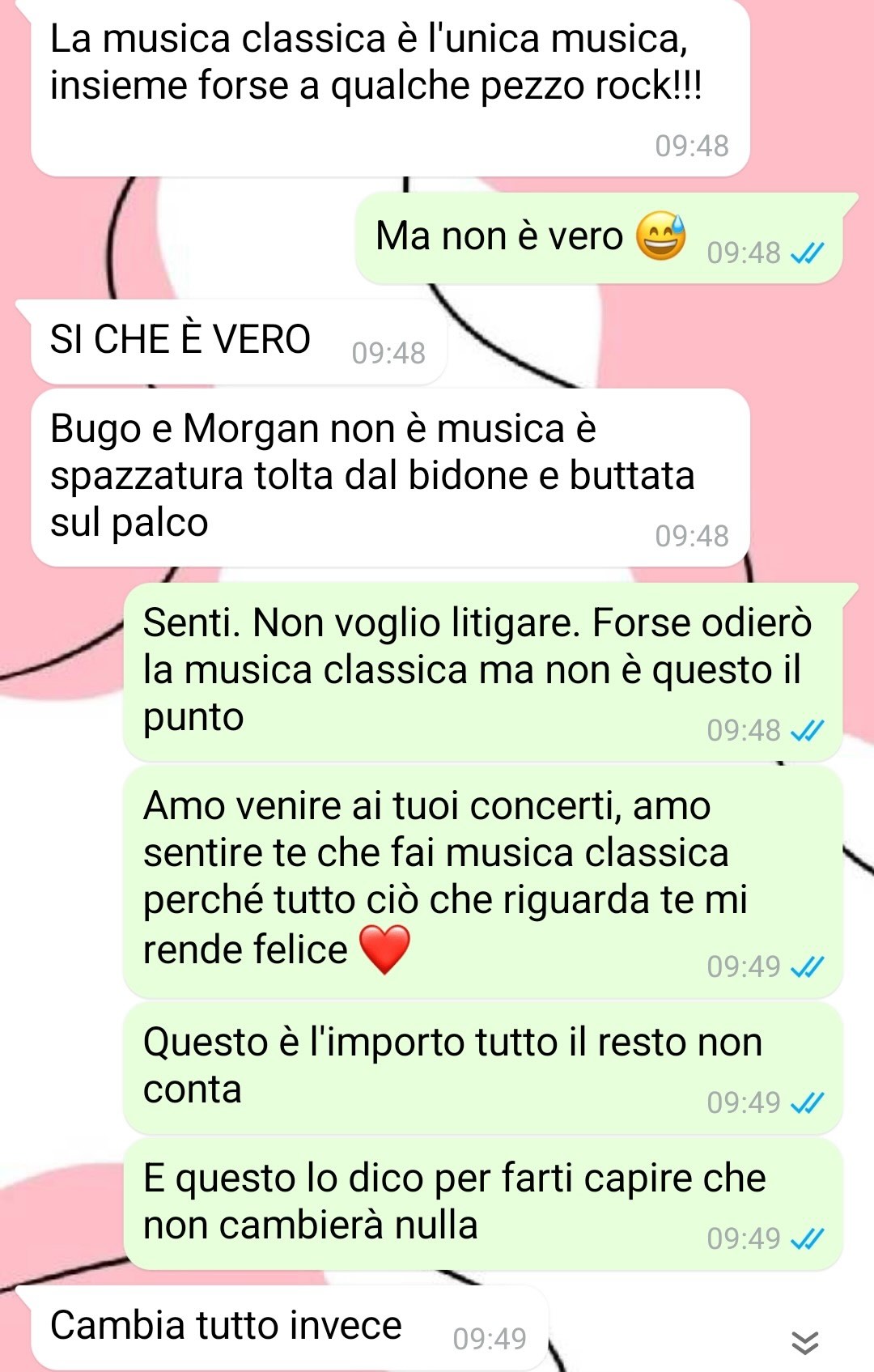 La nostra fan racconta una storia che sembra uscita da un film romantico, ma che si è trasformata con il tempo in qualcosa di molto diverso. Lei e Luca si sono conosciuti per caso, in una sera d’inverno, durante un concerto di musica classica.