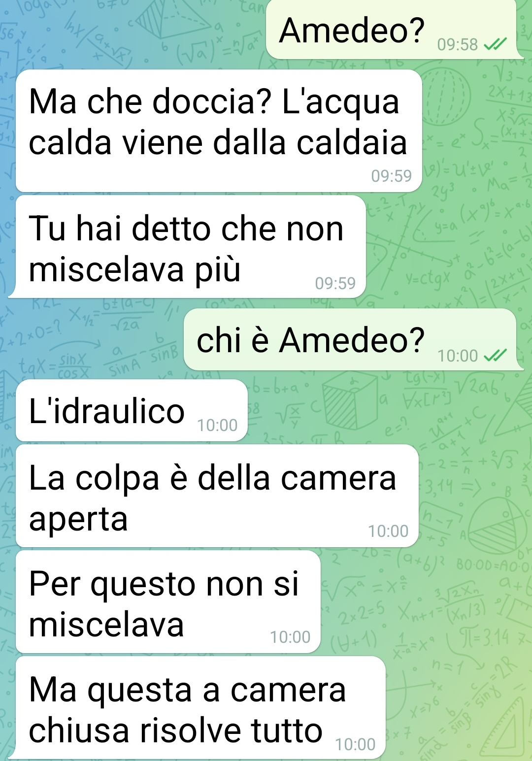 Il nostro fan Cesare è il protagonista della storia che è stata condivisa con la pagina. L’amico ha inviato una serie di screen che raccontano un episodio piuttosto movimentato avvenuto tra lui, sua moglie e un idraulico comparso improvvisamente nella vicenda.