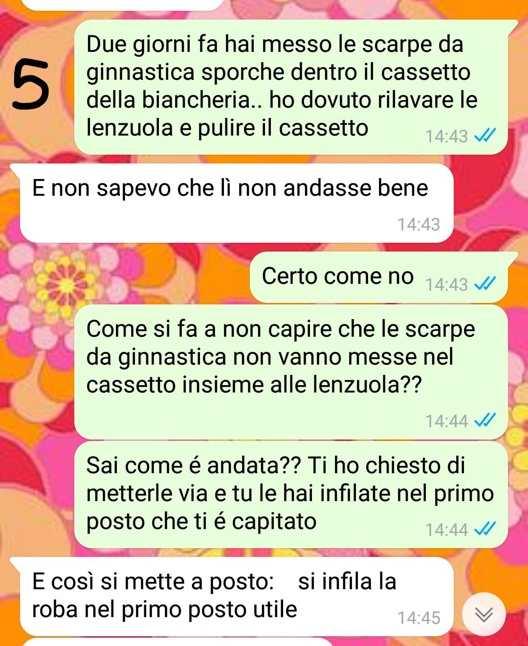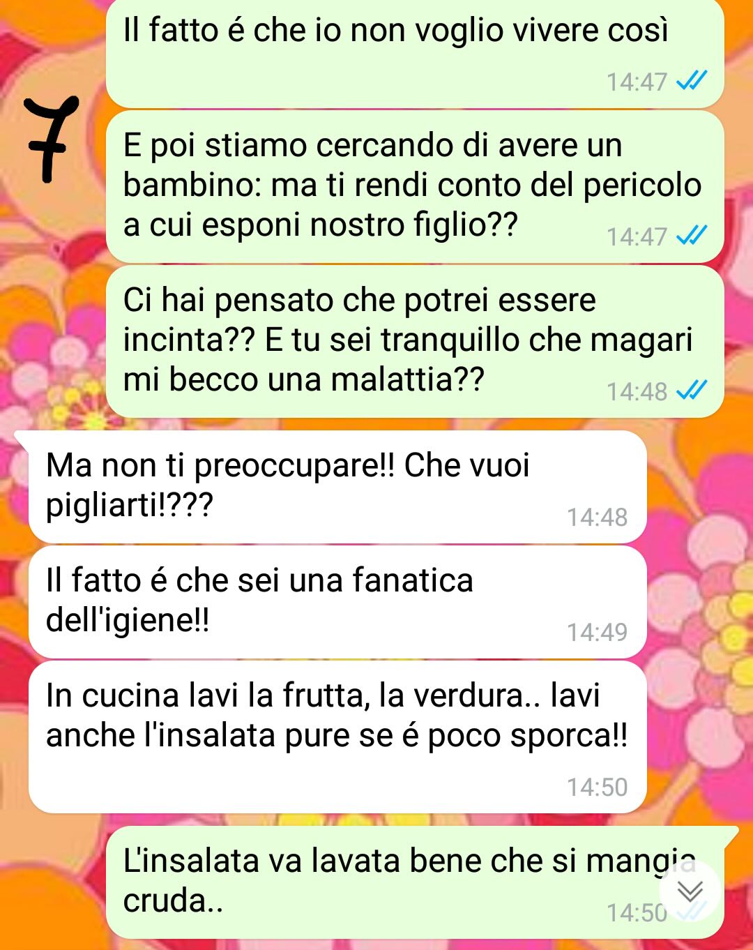 Il compagno Arturo lavora come commerciale in un’azienda automobilistica. La nostra follower lo descrive come una persona molto capace e scrupolosa sul lavoro, ma completamente diversa nella vita quotidiana. Secondo lei, al di fuori dell’ambiente professionale, Arturo tende a essere estremamente distratto e superficiale, tanto da affrontare ogni attività domestica come se fosse una perdita di tempo. Questo suo modo di fare si traduce in azioni poco attente e, spesso, fatte male.