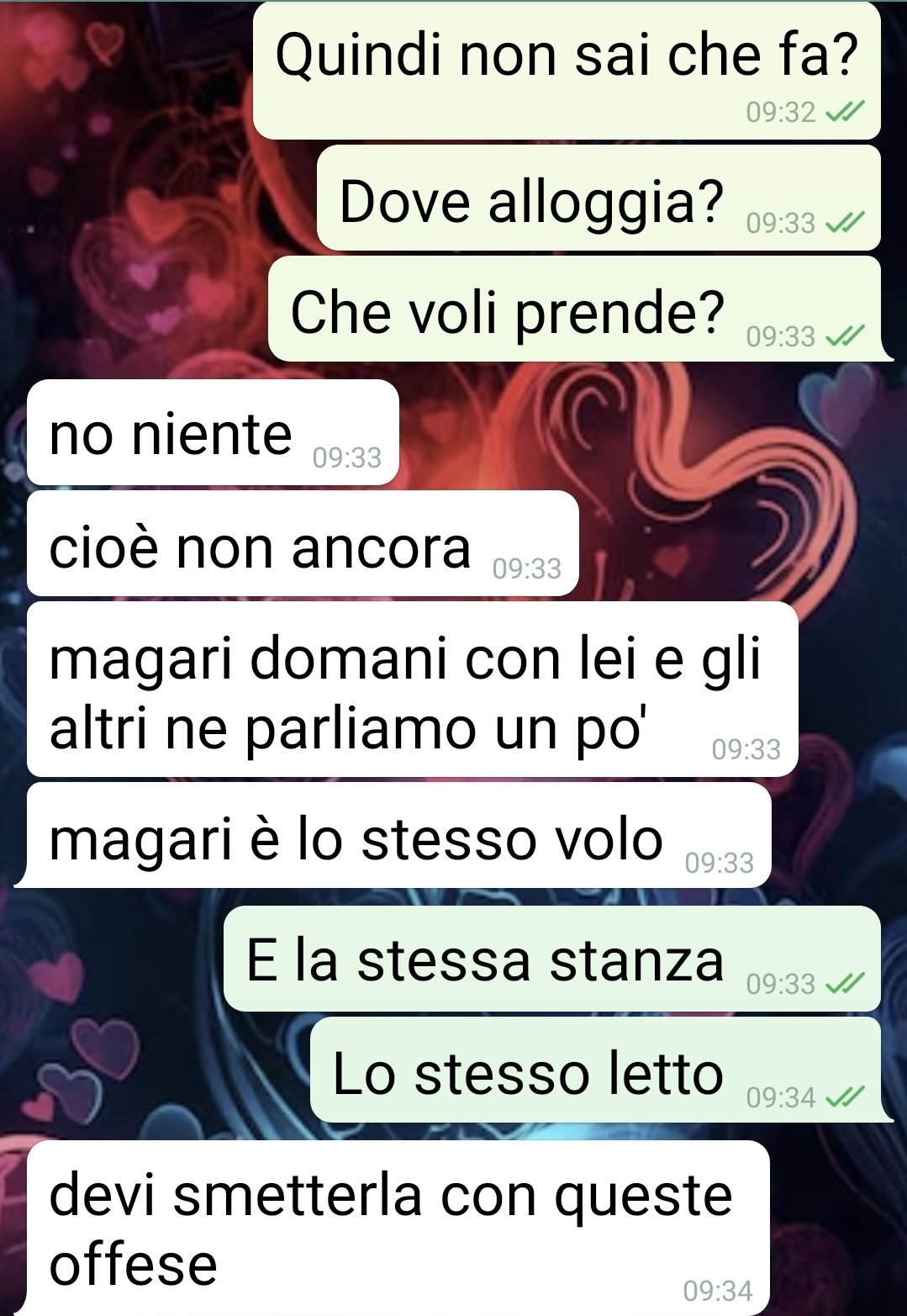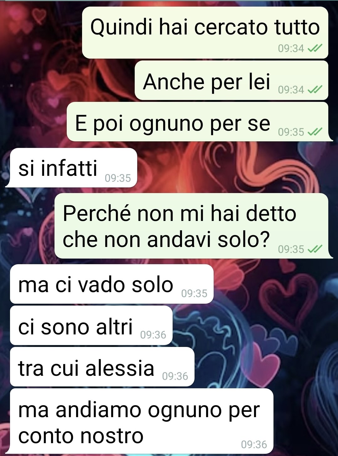 Insospettita, ha deciso di scrivergli subito per ottenere chiarimenti. Il contenuto della conversazione, che ha deciso di condividere, mostra una serie di risposte che lei definisce contraddittorie, vaghe o poco credibili. Il suo fidanzato ha cercato di giustificarsi, spiegando a modo suo il senso del viaggio e delle annotazioni ritrovate, ma la nostra fan afferma che la realtà – quella vera – l’ha scoperta da sola, senza più bisogno delle sue parole.