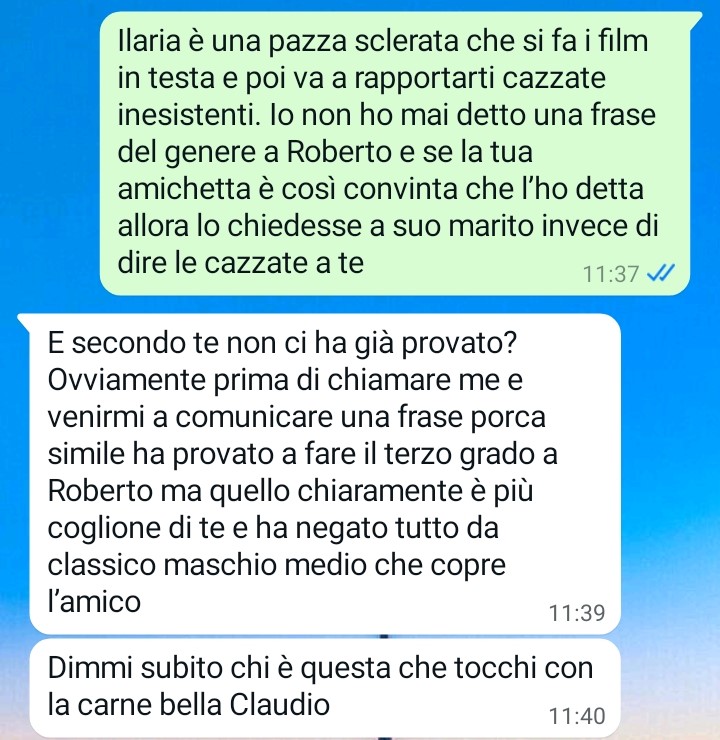 L’episodio più recente, però, avrebbe superato ogni limite precedente. Il nostro amico racconta di aver ricevuto una serie di messaggi su WhatsApp che lo hanno lasciato incredulo. Il contenuto della conversazione, a suo dire, sarebbe stato talmente esagerato da risultare difficile da comprendere e accettare con un approccio razionale. Claudio spiega di essersi trovato davanti ad accuse e ricostruzioni che gli sono sembrate del tutto scollegate dalla realtà.