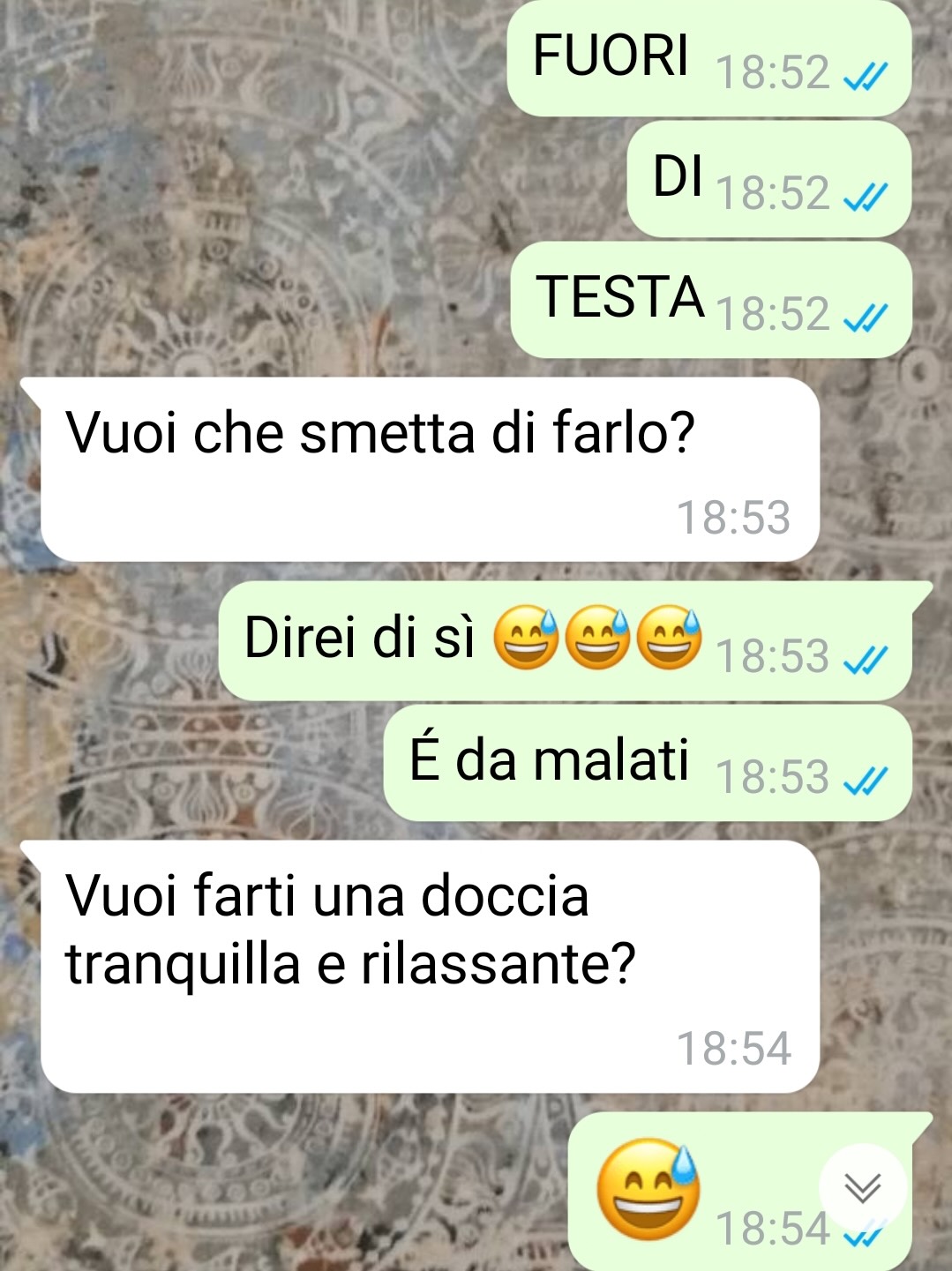 Inizialmente ha pensato a delle semplici coincidenze, ma col ripetersi della situazione ha iniziato a nutrire qualche sospetto. Così ha deciso di intervenire, chiedendo il numero di telefono dell’inquilino direttamente al proprietario, per potergli scrivere e spiegargli la cosa in modo chiaro. Ha cercato di mantenere toni pacati, ma al tempo stesso ha voluto far presente il disagio, sperando che da parte sua ci sia più attenzione in futuro nell’utilizzo degli orari della doccia.