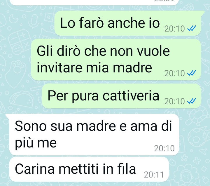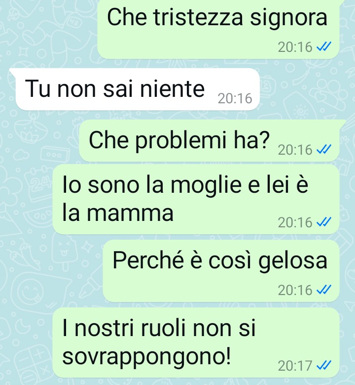 La risposta della suocera è stata categorica e aspra: un netto rifiuto accompagnato da toni particolarmente duri e carichi di risentimento. Il nostro follower descrive questo ‘no’ come cattivo e pervaso da un rancore che considera caratteristico della suocera. La donna si interroga sui motivi di quella che percepisce come gelosia da parte della suocera nei suoi confronti, trovando assurda l’idea che possa esistere una rivalità tra loro, dato che non si considerano né rivali né in competizione per l’affetto del marito.