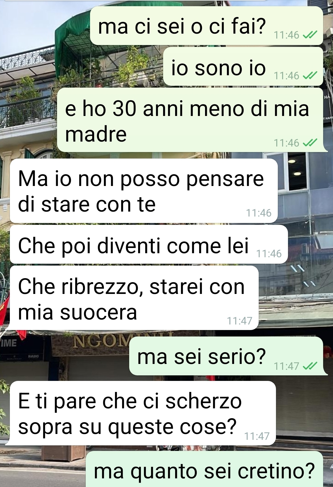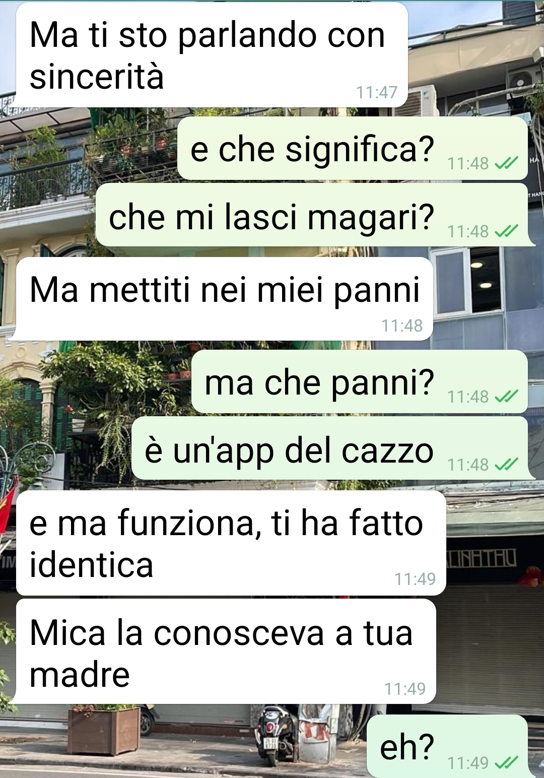 Quello che è successo dopo l’invio della foto ha lasciato completamente senza parole la nostra amica. Il fidanzato, vedendo l’immagine invecchiata, ha improvvisamente realizzato che lei somiglia moltissimo a sua madre, una scoperta che evidentemente non aveva mai fatto prima in quasi due anni di relazione. Questa rivelazione ha innescato nella mente del ragazzo una serie di pensieri e reazioni che hanno portato la situazione a degenerare rapidamente, trasformando quello che doveva essere un momento di leggerezza in qualcosa di completamente diverso.