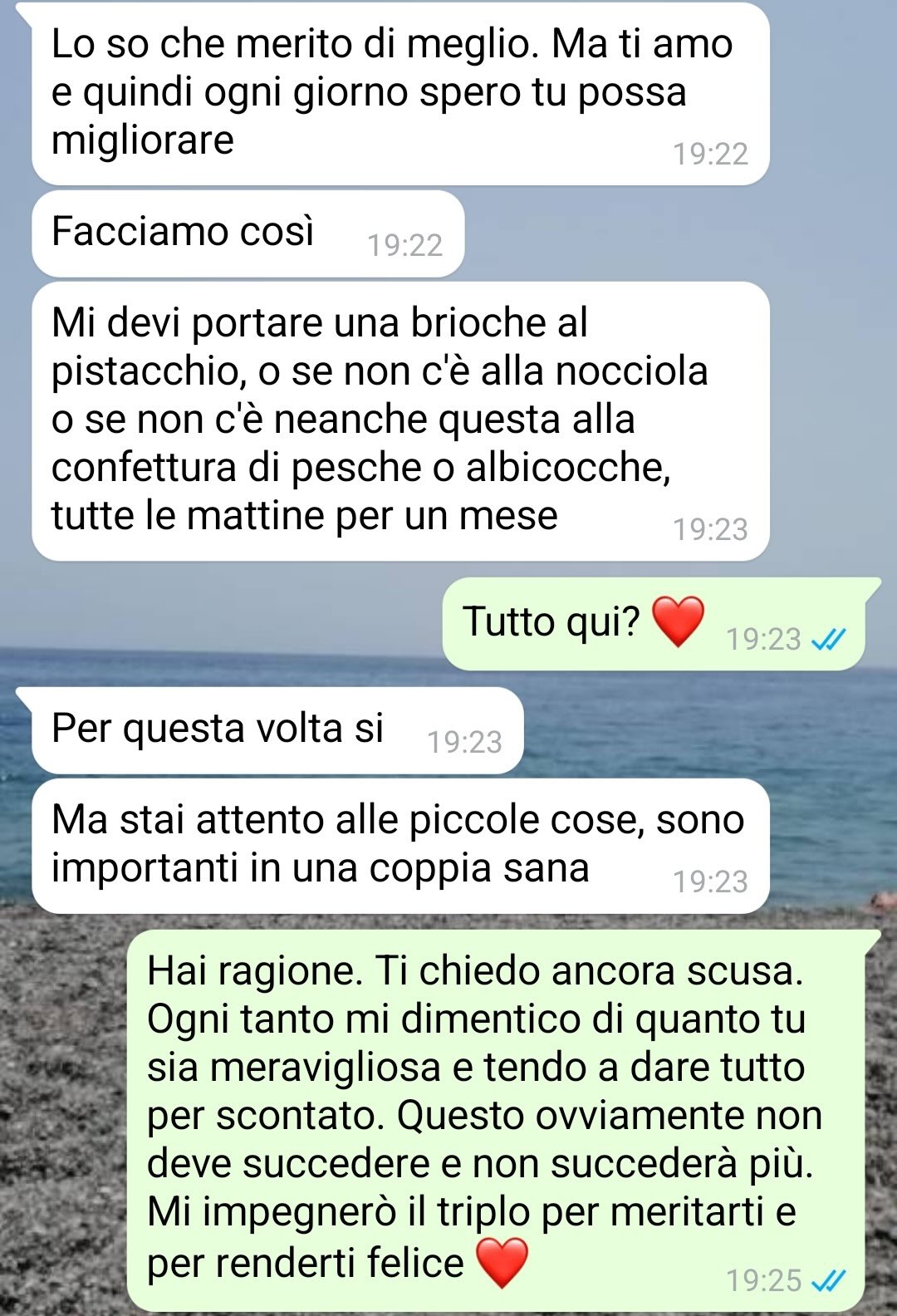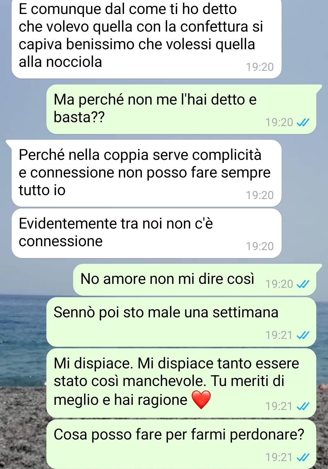 Nel testo, il nostro amico spiega di aver deciso di inviare una conversazione perché ritiene che possa essere utile ad altre persone che si trovano in una relazione. Specifica che il suo intento è quello di mostrare un esempio reale di confronto e di dialogo all’interno di una coppia. Il nostro follower racconta che, per lui, è importante mettersi in discussione e cercare costantemente di migliorarsi come partner.